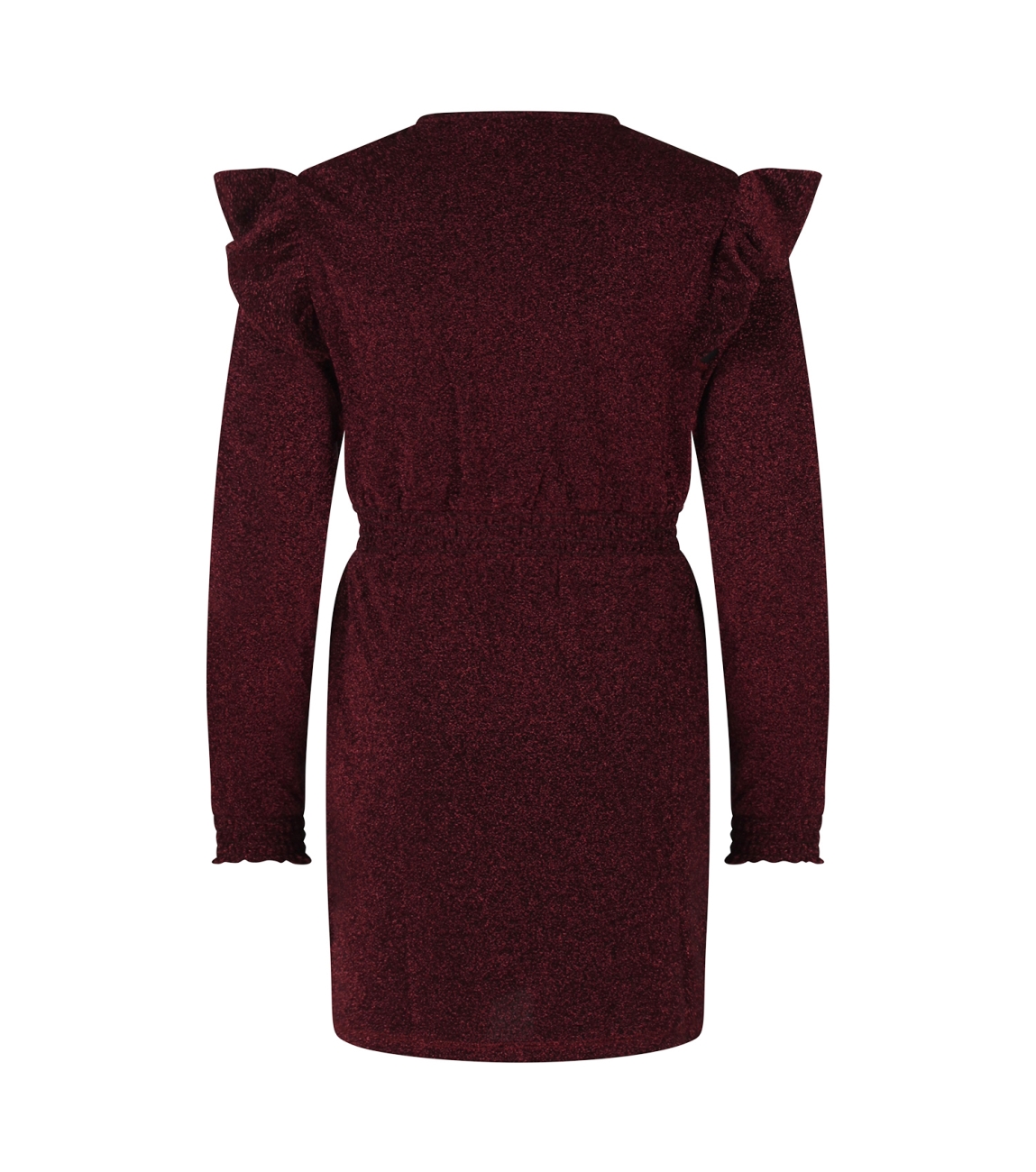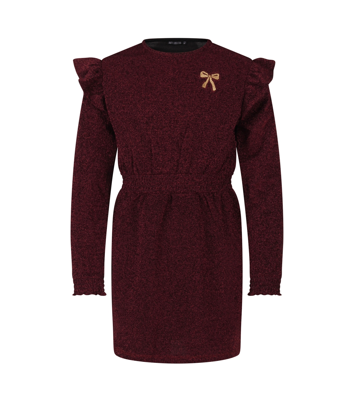 Omschrijving | Pol/metalic/el, ruche, strikborduur, smock |