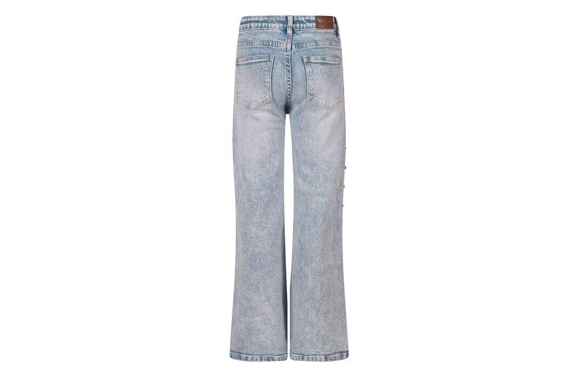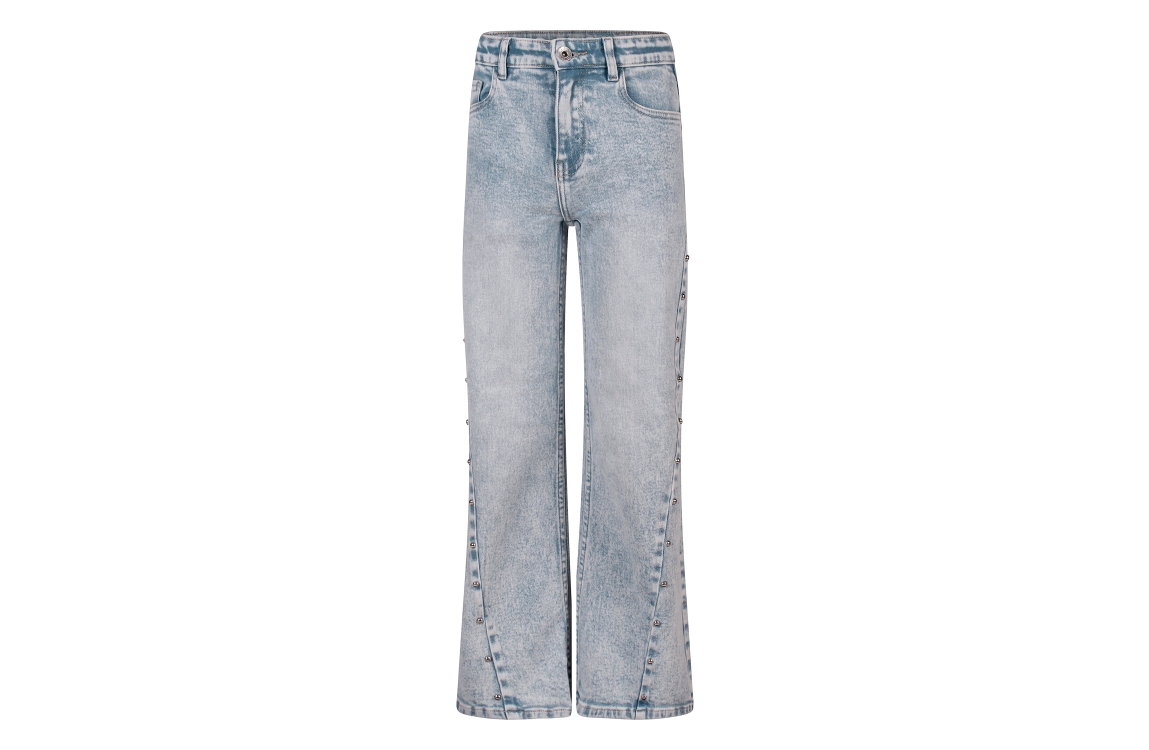 Omschrijving Co/el denim, deelnaad studs, rechte pijp
