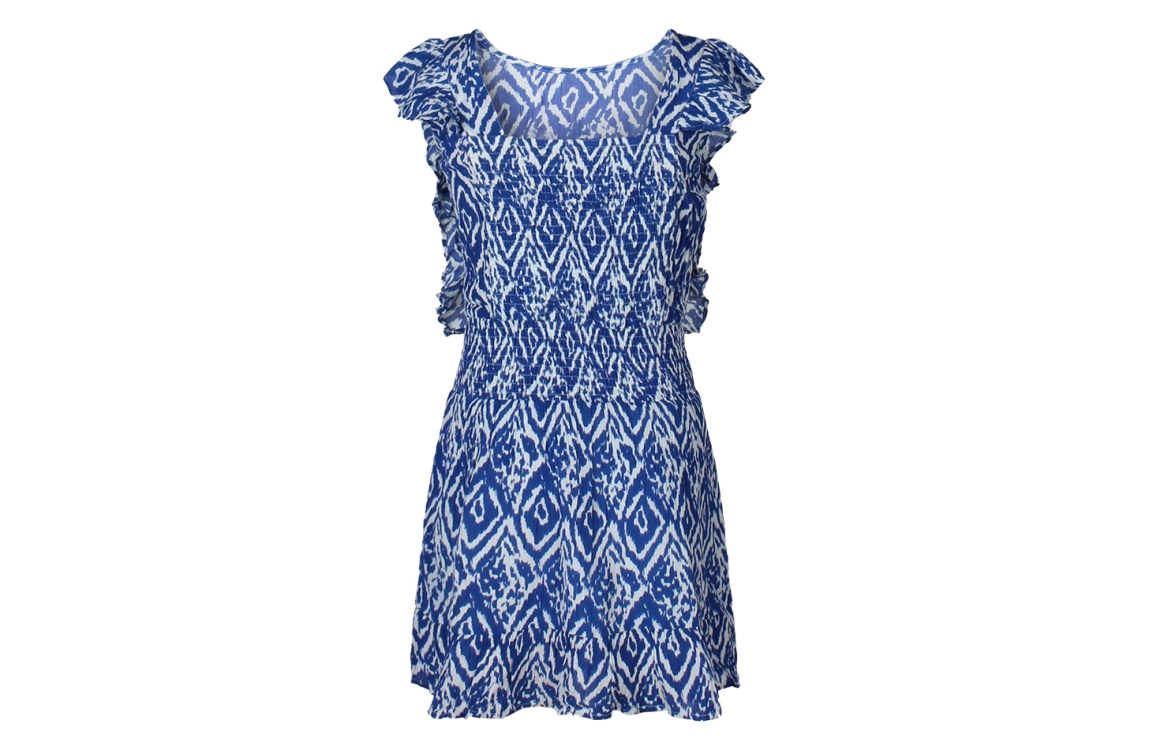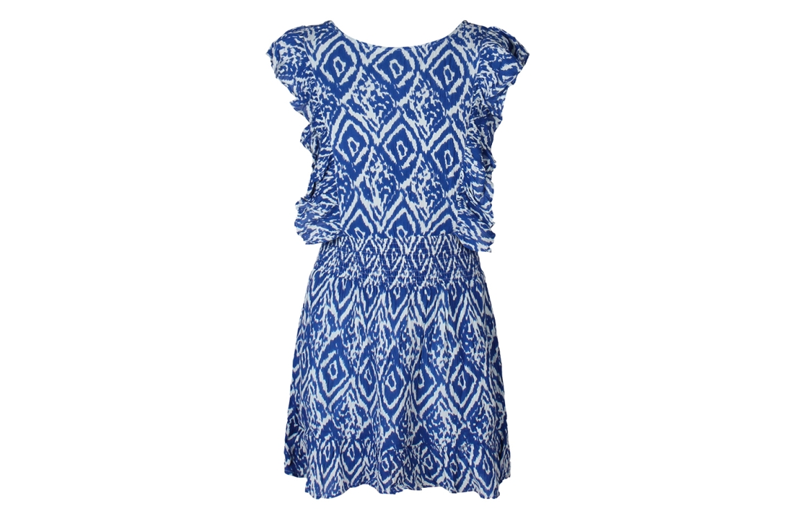 Omschrijving Visc crepe, 2-kleurig ikatdessin, gesmockt