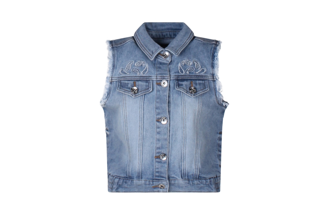 Omschrijving Co/ly denim, borduur, rafels