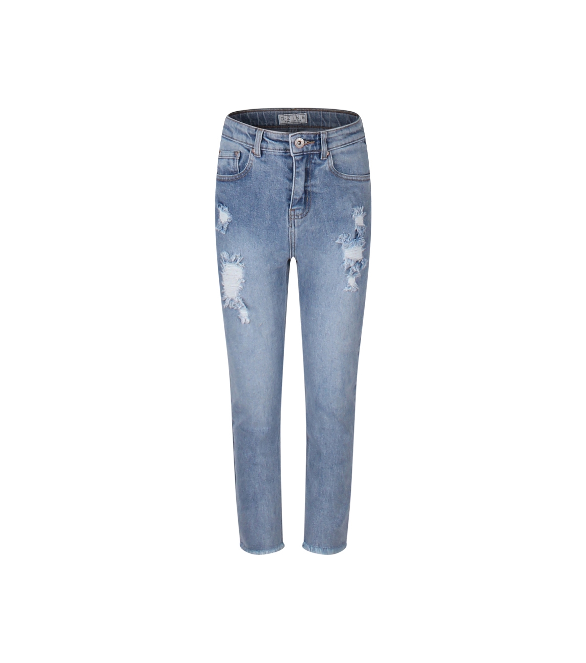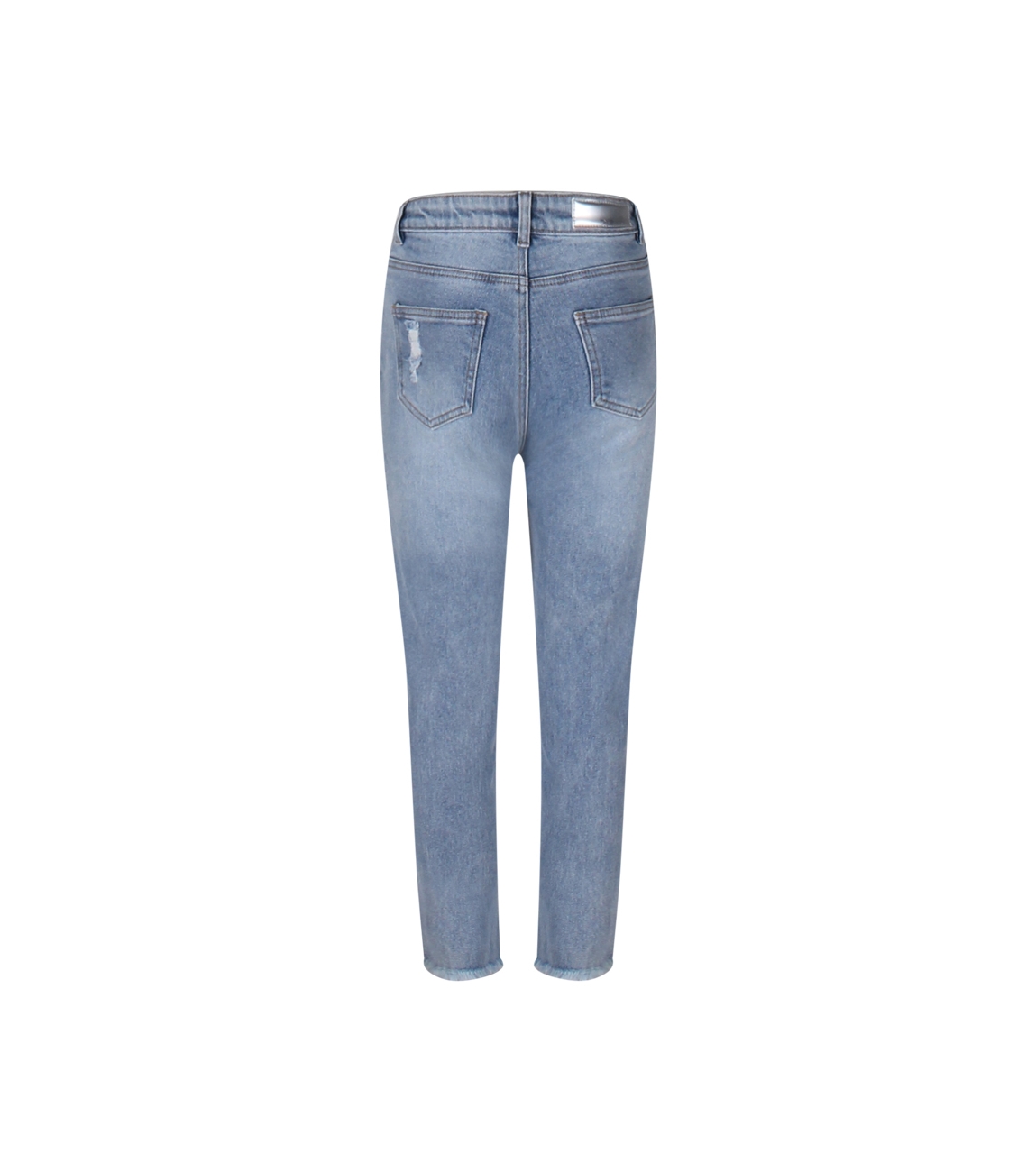 Omschrijving | Co/ly denim, damaged, momfit, rafels |