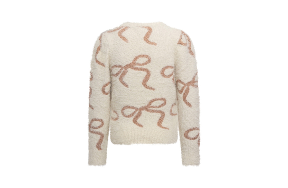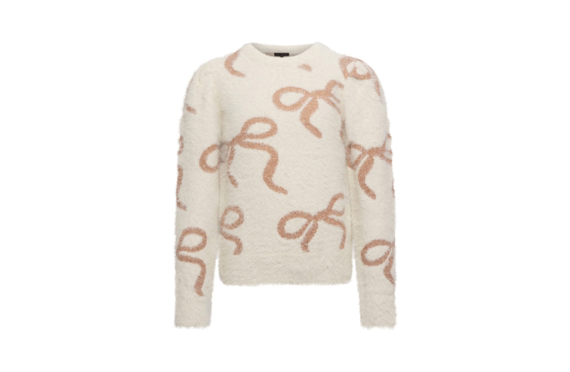 Omschrijving Ny/acr featheryarn/lurex, strikdessin