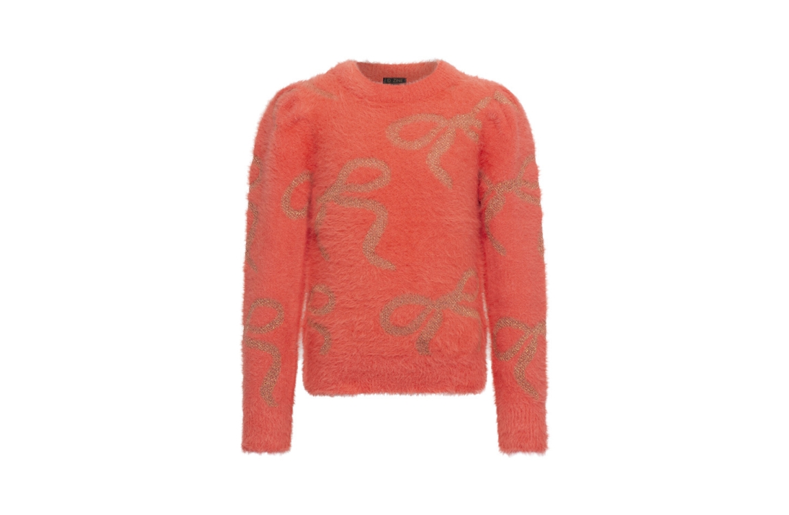 Omschrijving Ny/acr featheryarn/lurex, strikdessin
