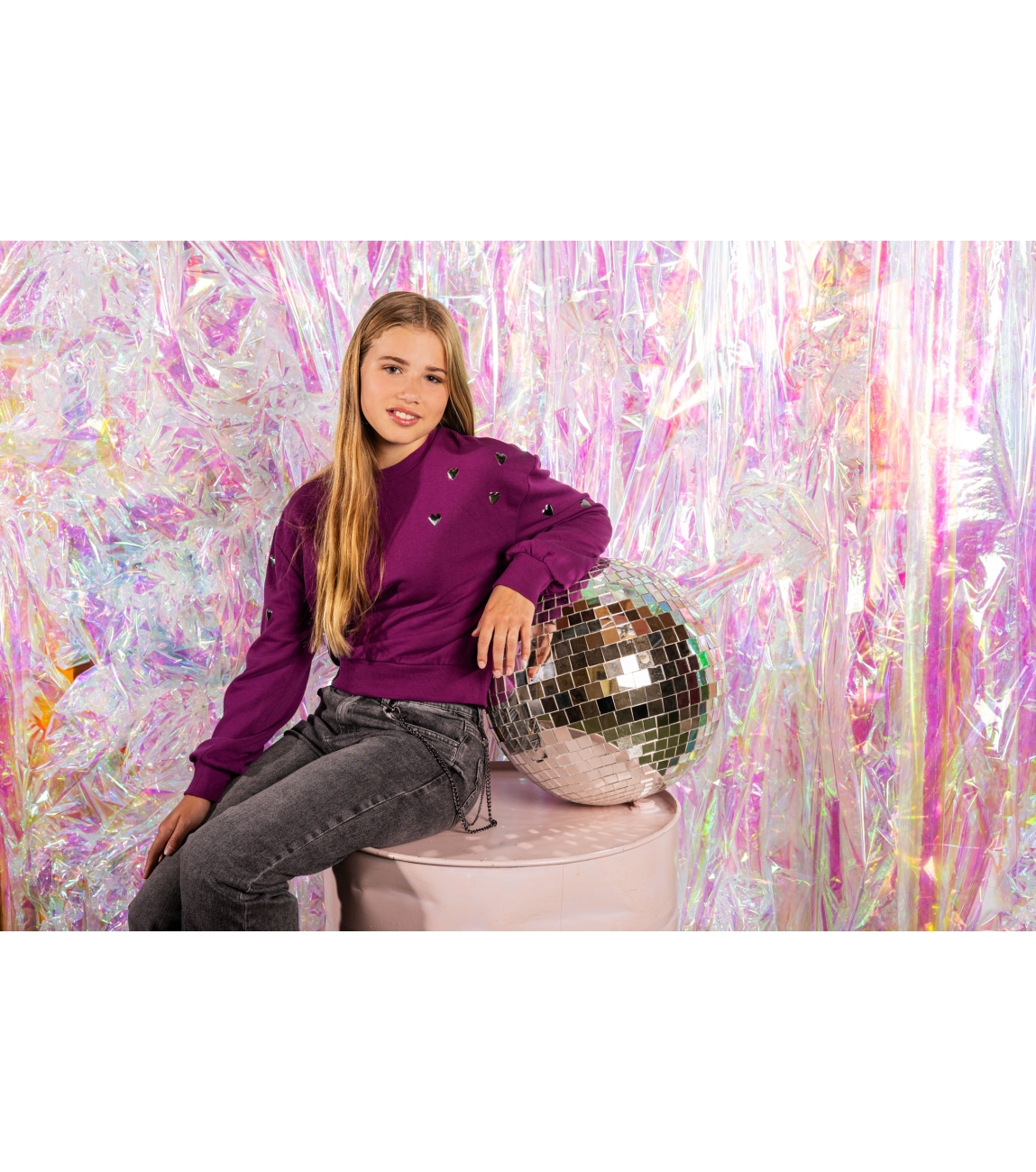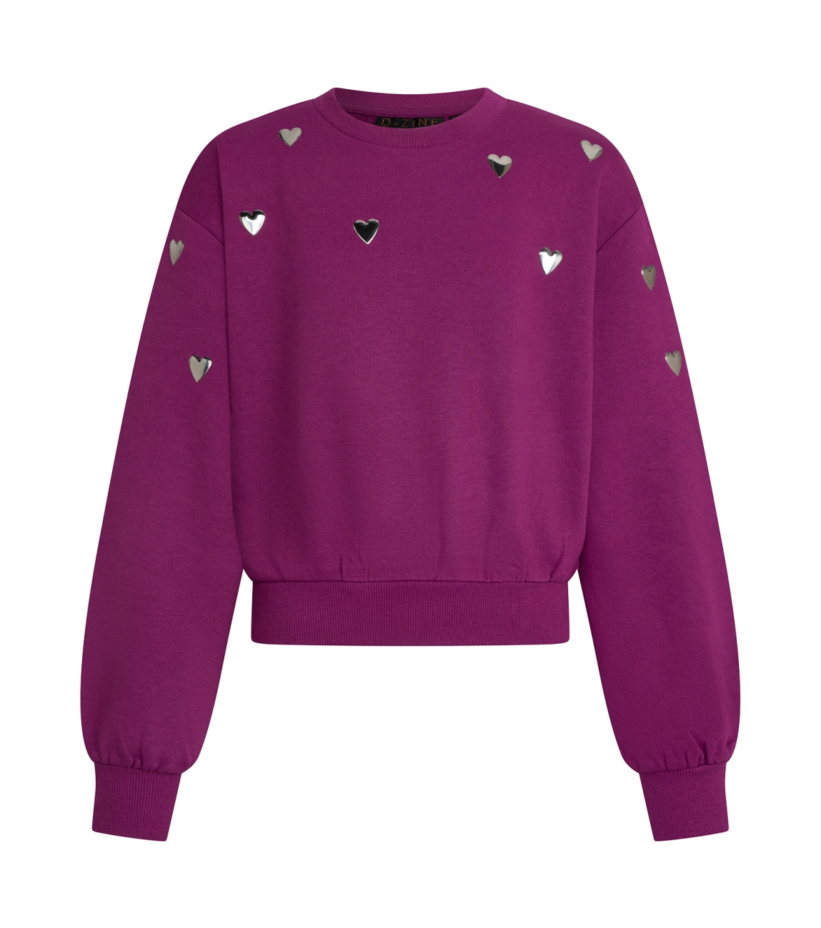 Omschrijving | Co/pol sweat, hartjesstuds |