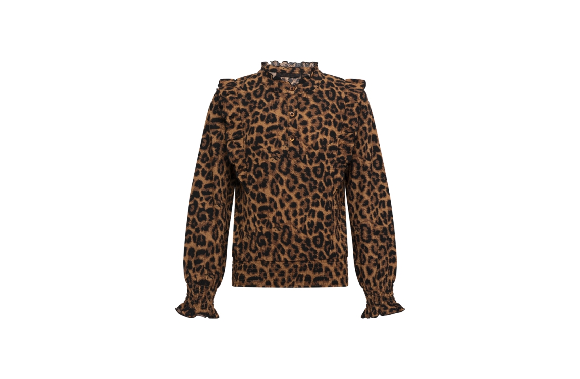 Omschrijving Pol/el crepe, gedessineerd, smock/ruches
