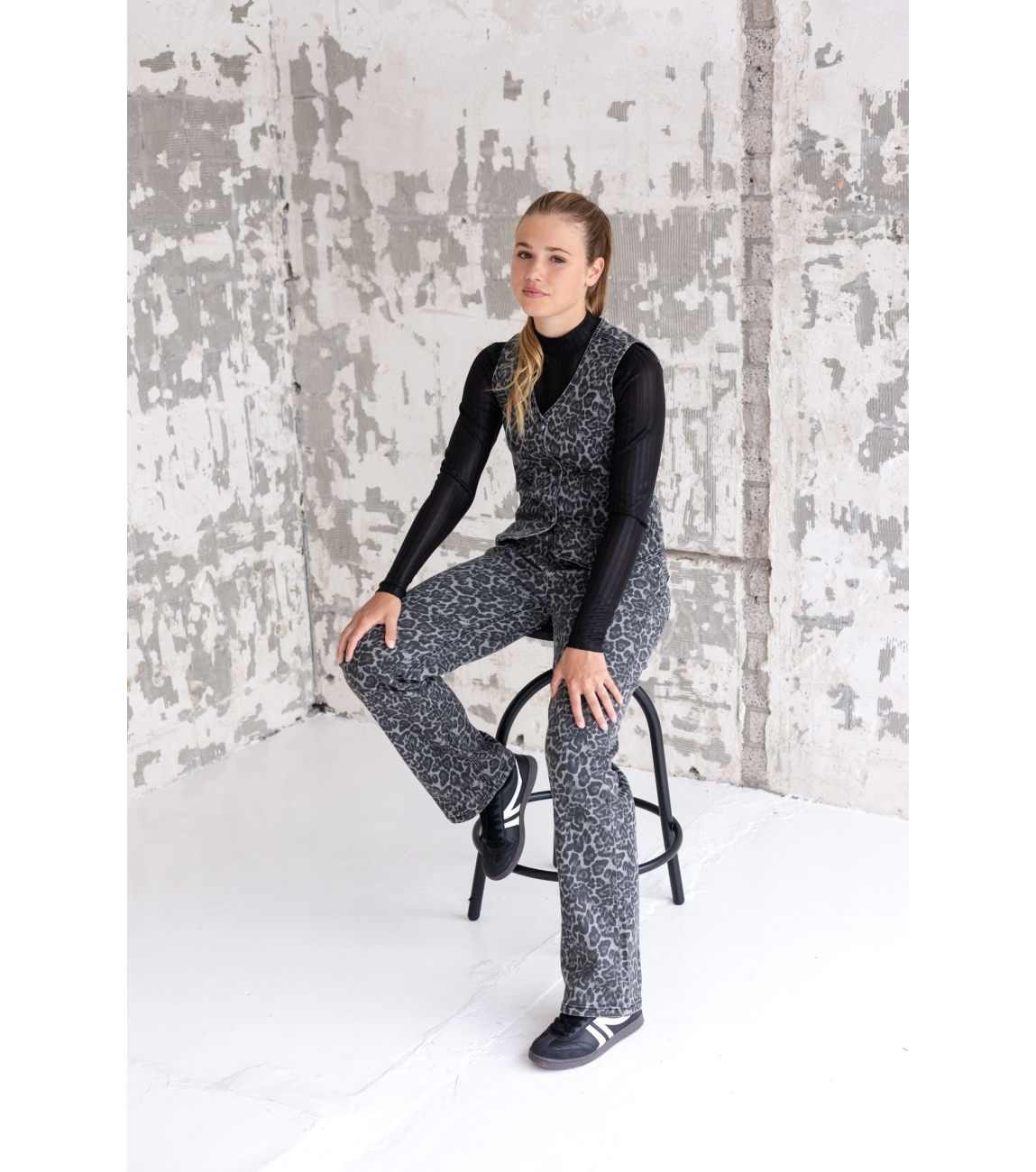 Omschrijving | Co/el twill, panterdessin, rechte pijp |