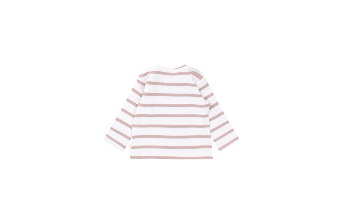 Omschrijving Bio co/ly rib streep, houtlook knoopjes