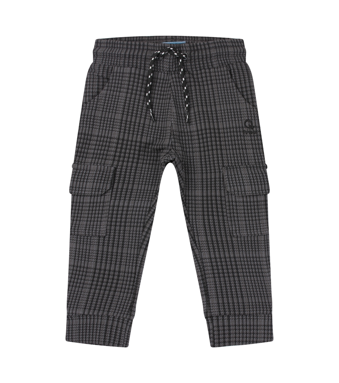 Omschrijving | Co/ly sweat, geruit, zijklepzakken |