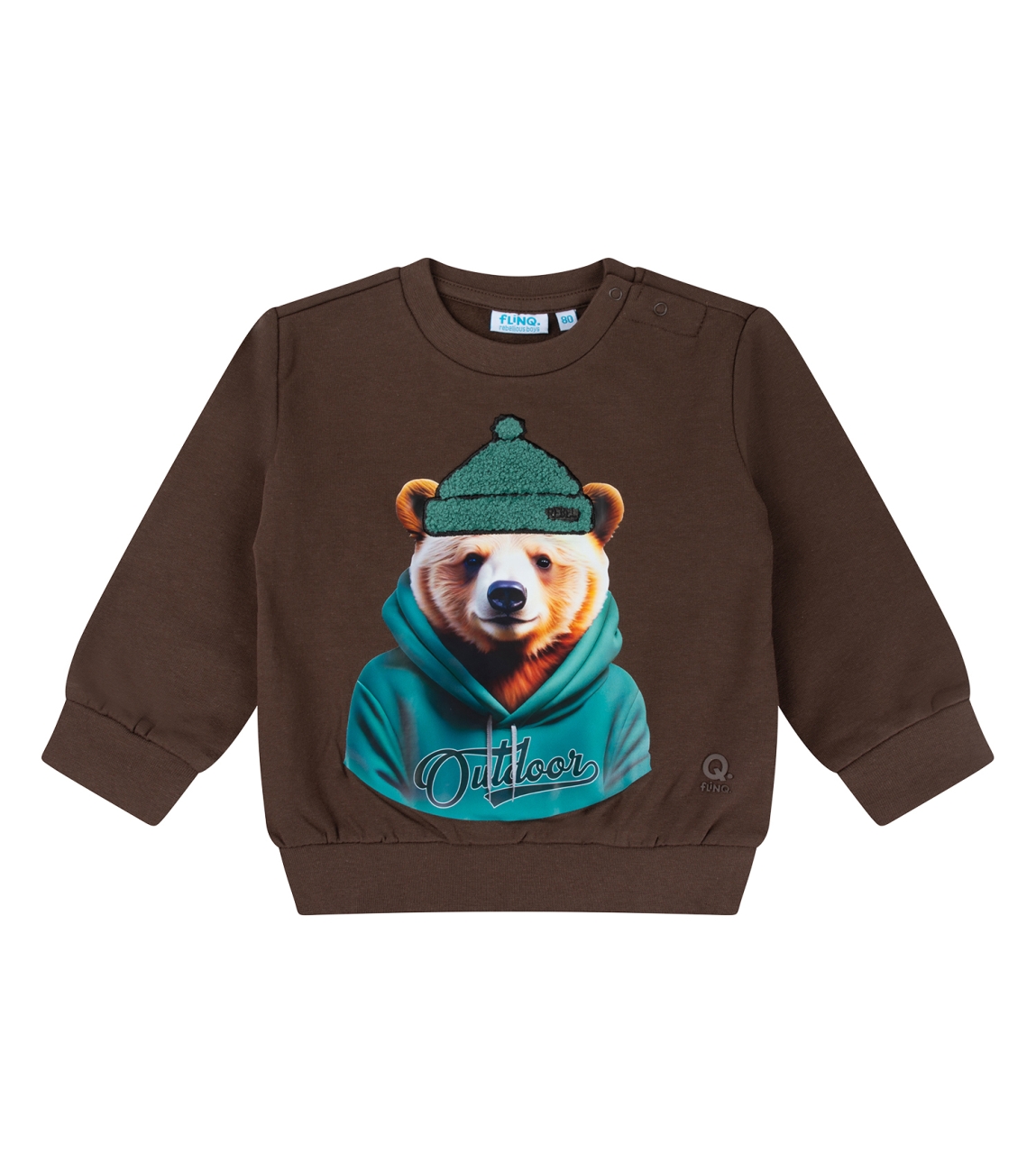 Omschrijving | Co/ly sweat, print dier, frotte appliek |