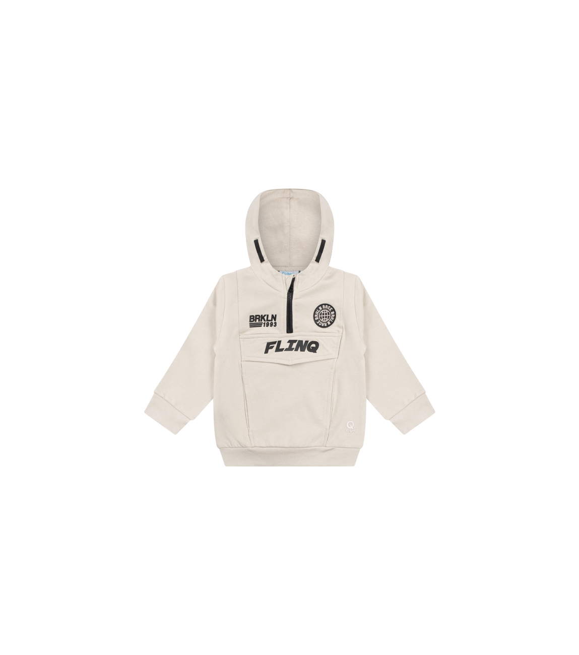 Omschrijving | Sweat, hood, ritssluiting, tekstprint |