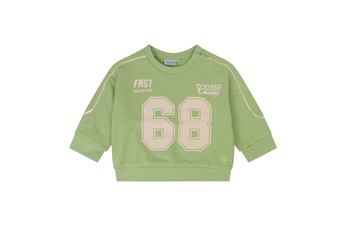 Omschrijving Sweat, deelnaden piping, borduur/print