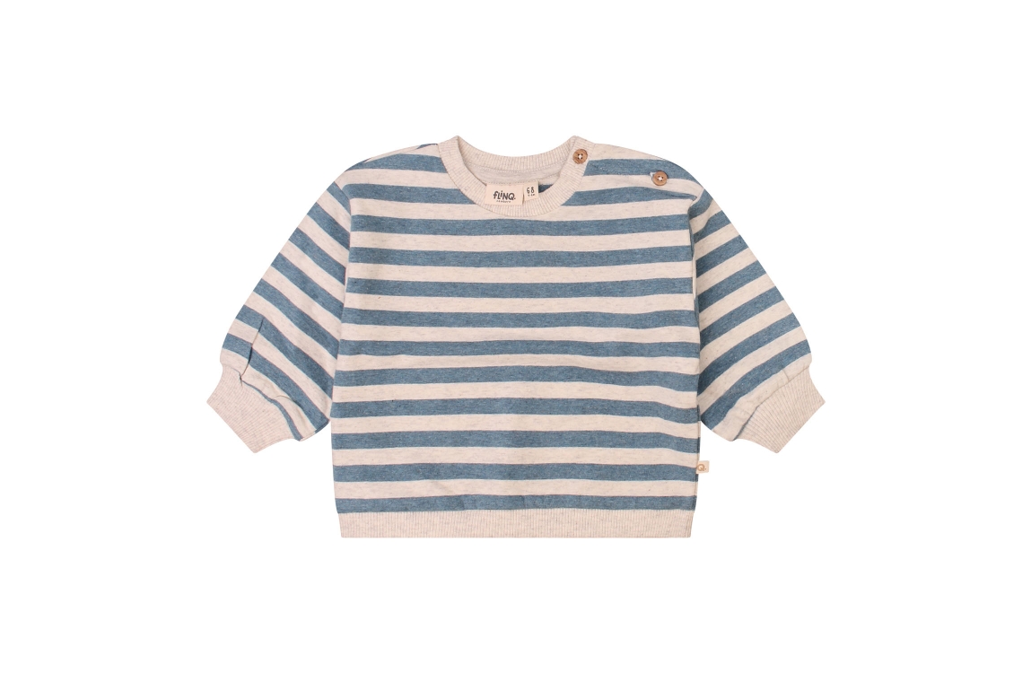 Omschrijving Bio co/ly yd stripe, houtlook knoopjes