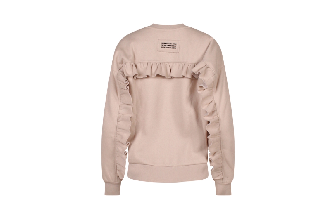 Omschrijving Co/pol sweat, ruche achter/mouw