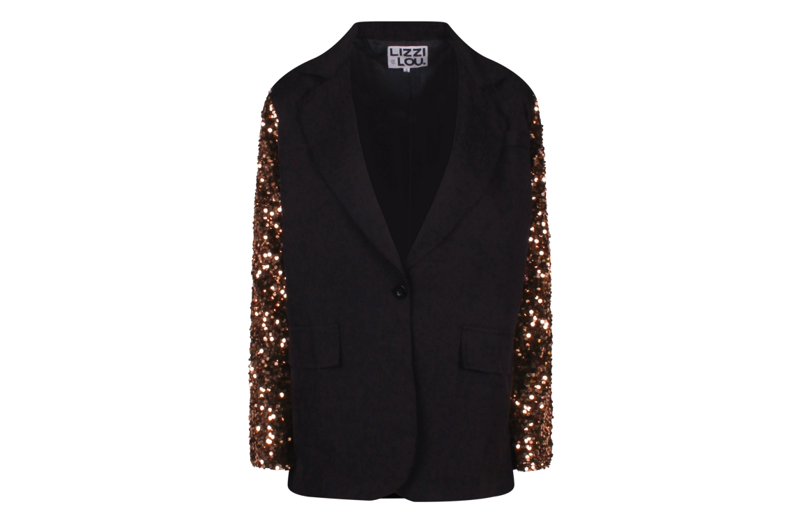 Omschrijving Pol. reverkraag, pailettenmouw, oversized