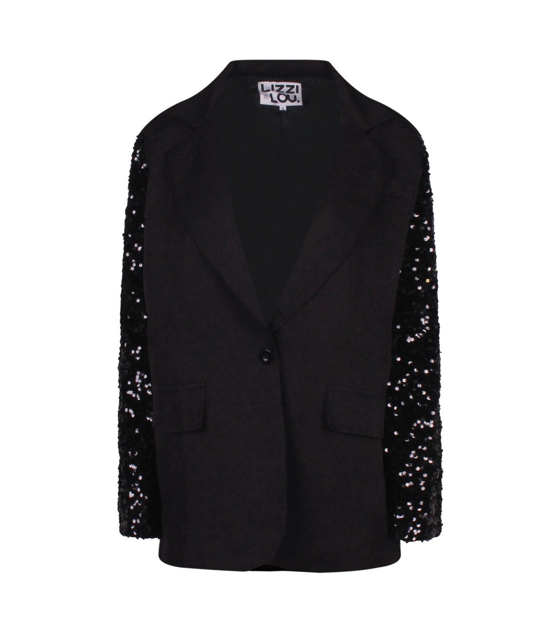 Omschrijving | Pol. reverkraag, pailettenmouw, oversized |