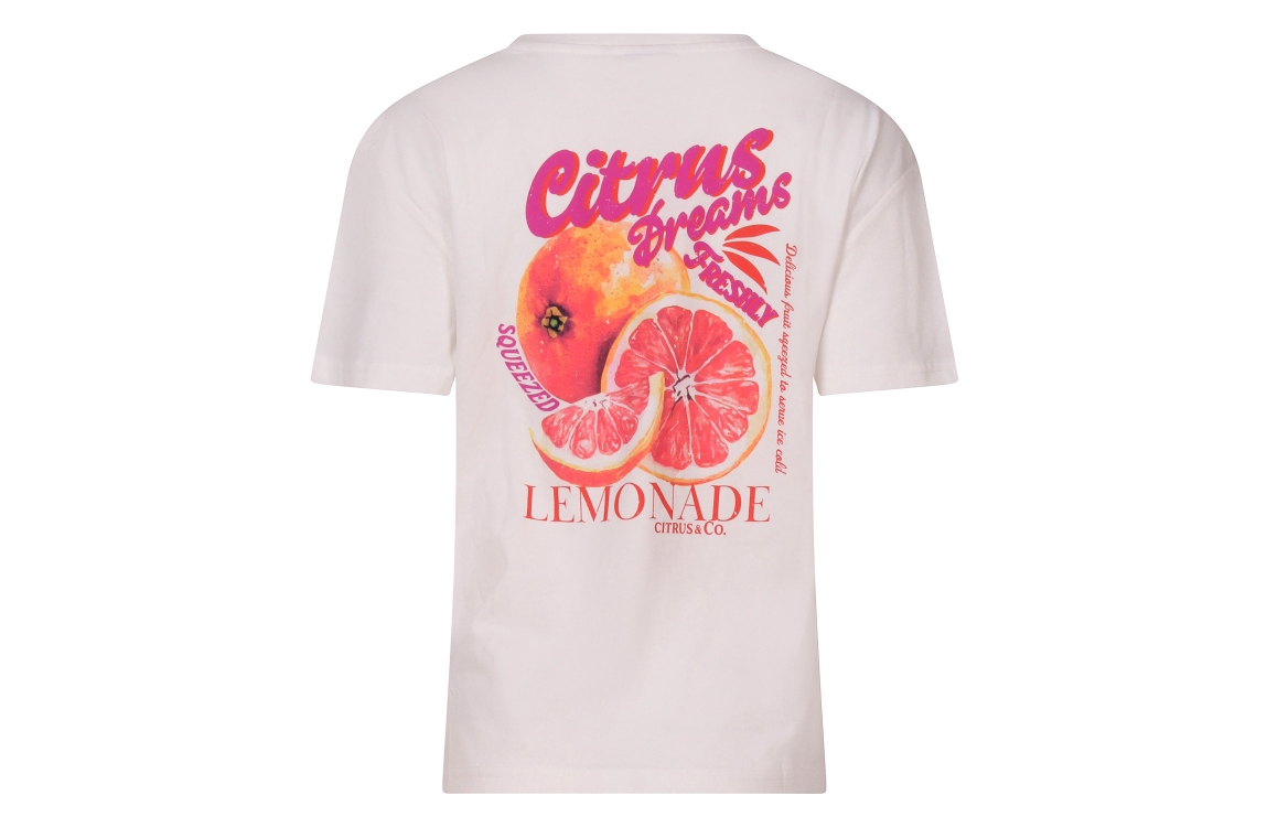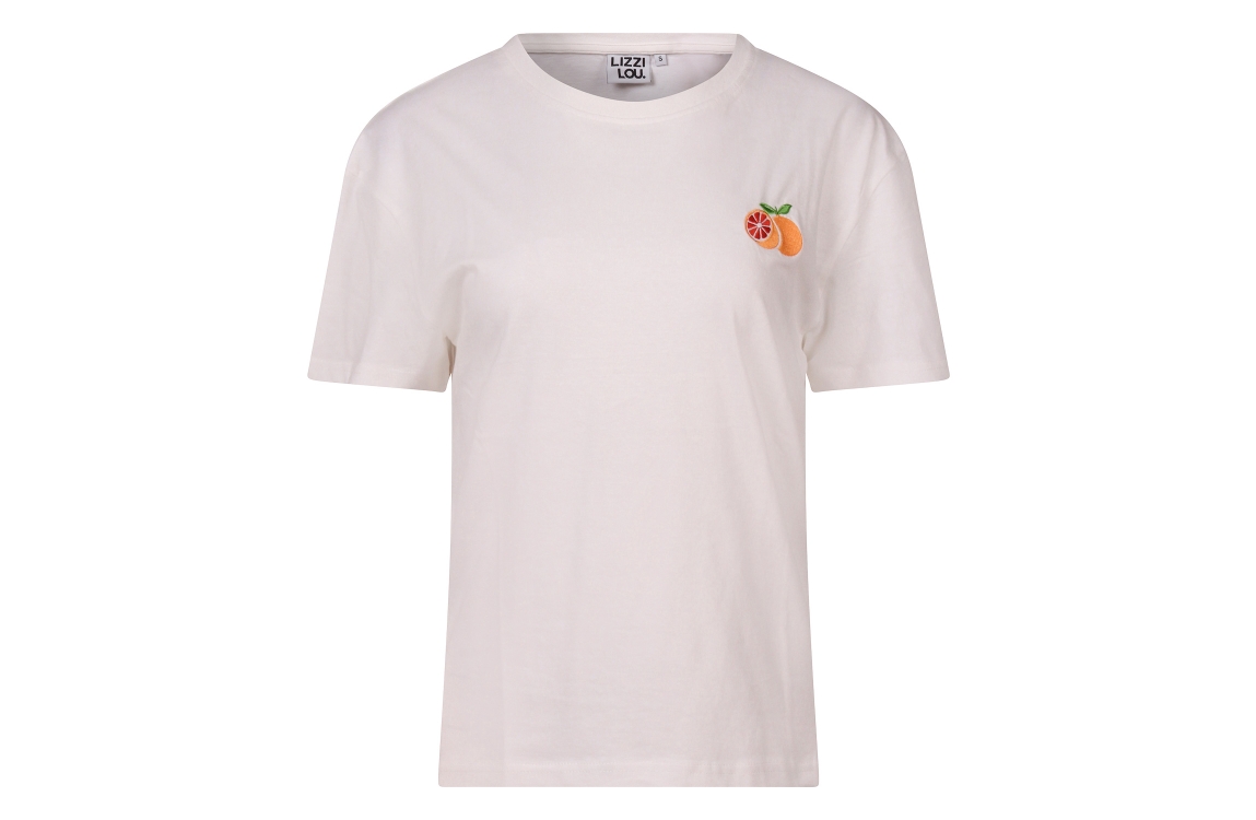 Omschrijving Co sj, borduurtje voor, fruitprint achter