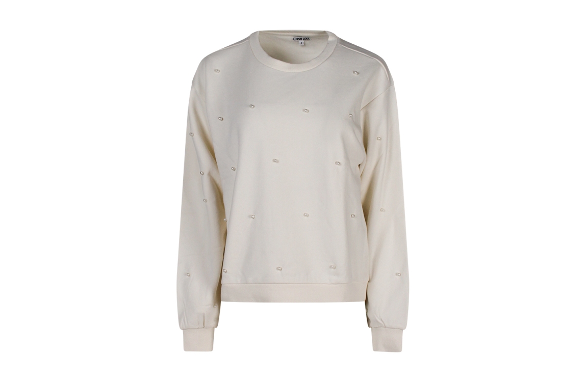 Omschrijving Co/pol sweat, parelstuds voor/mouwen