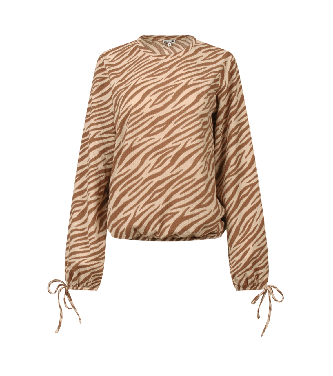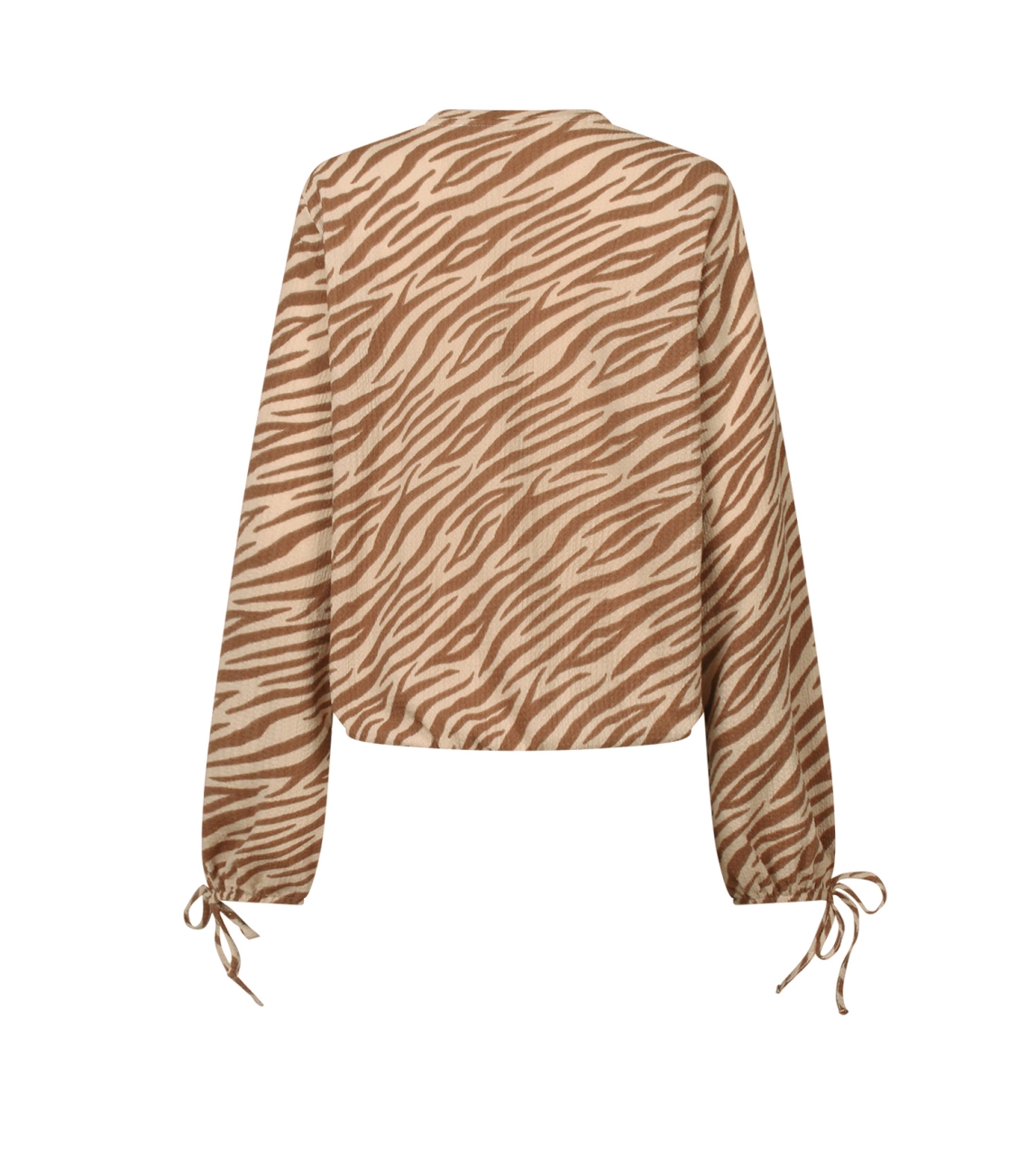 Omschrijving | Pol/el brushed, zebradessin, strikje mouw |