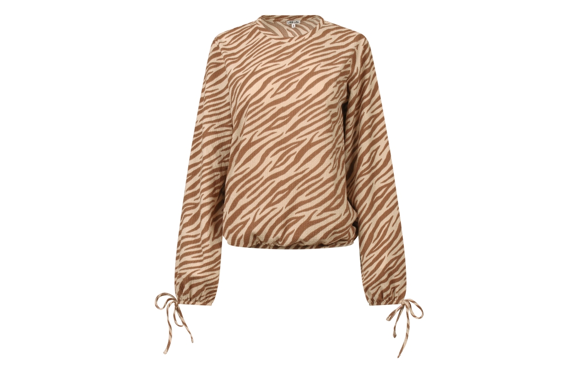 Omschrijving Pol/el brushed, zebradessin, strikje mouw