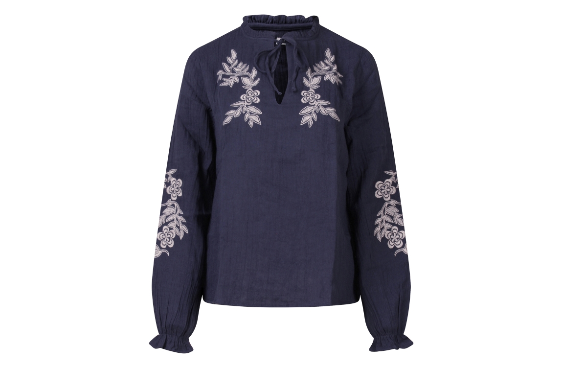 Omschrijving Mousseline, borduur chest/mouwen