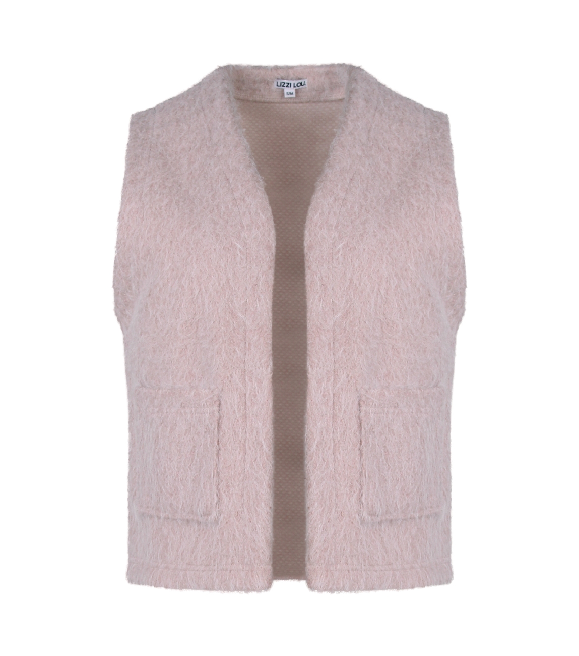 Omschrijving | Pol. boucle, zakken, mouwloos |