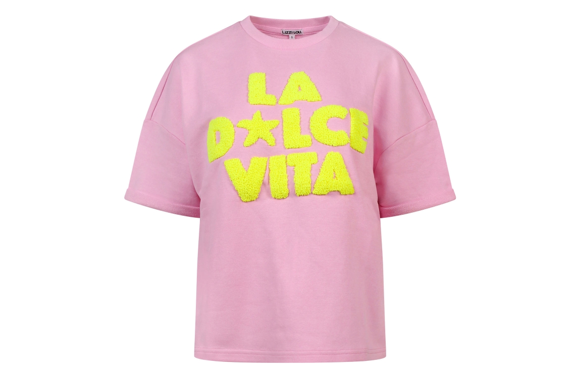 Omschrijving Co/pol sweat, frotte tekstapplieks