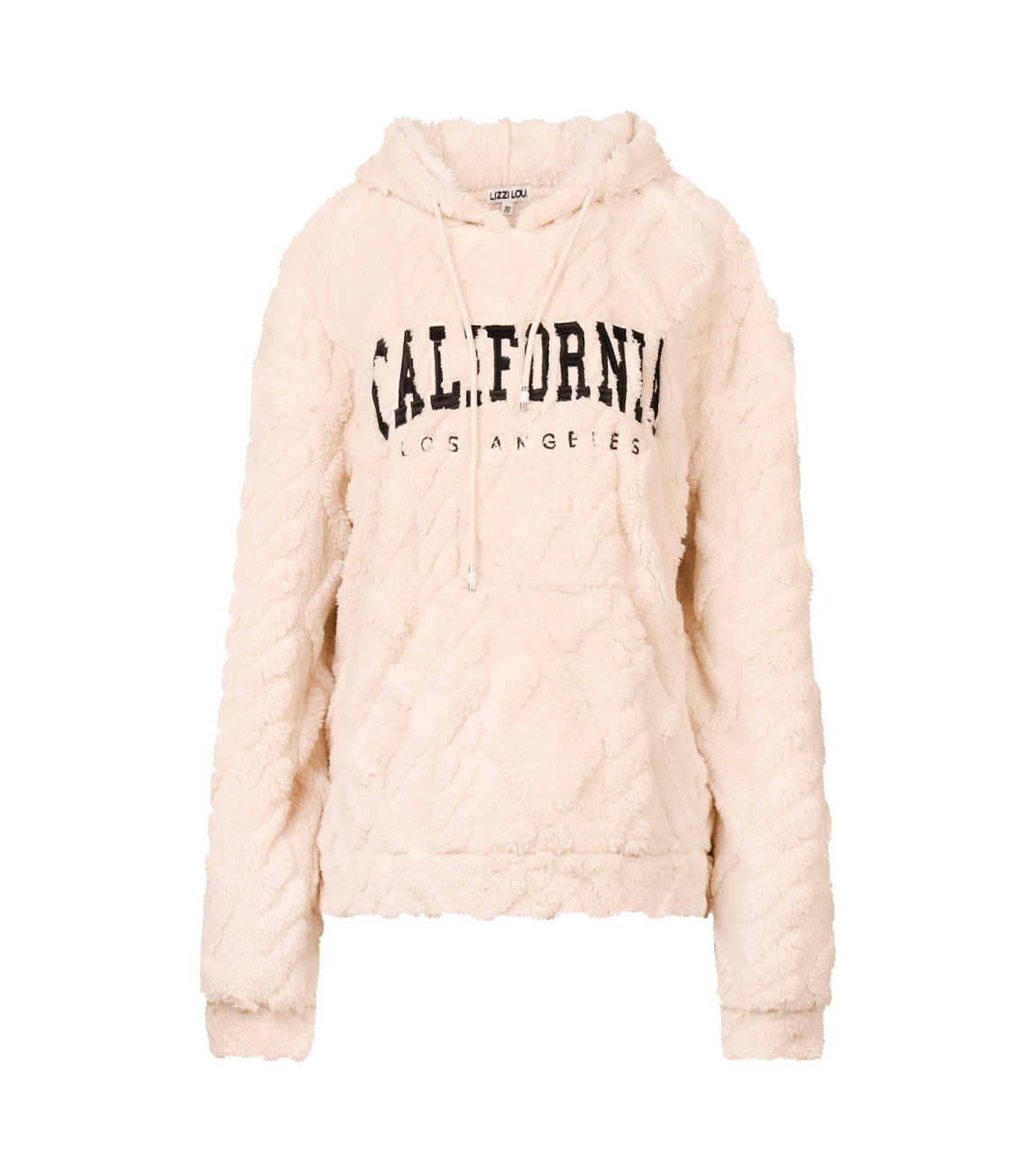 Omschrijving | Jacquard fleece, tekstborduur, hood |