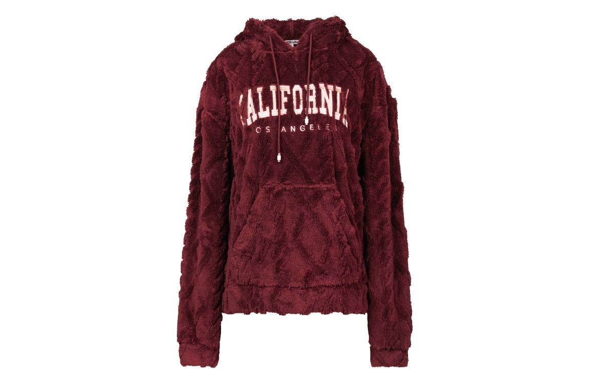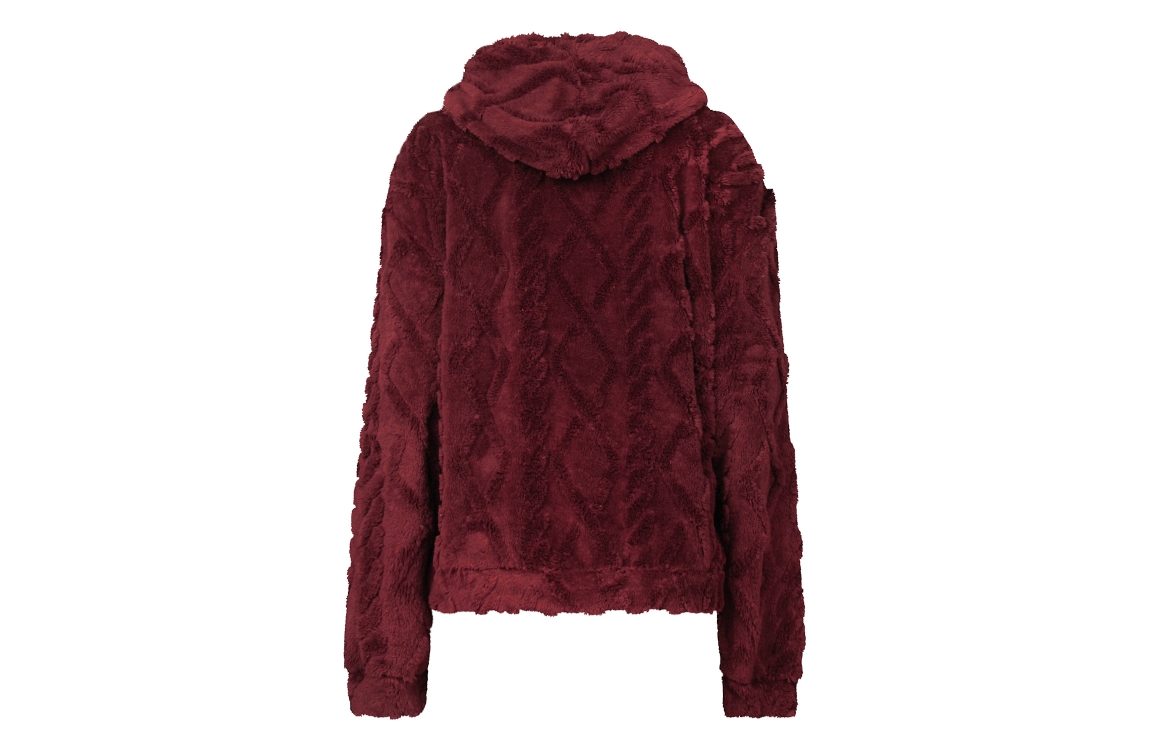 Omschrijving Jacquard fleece, tekstborduur, hood
