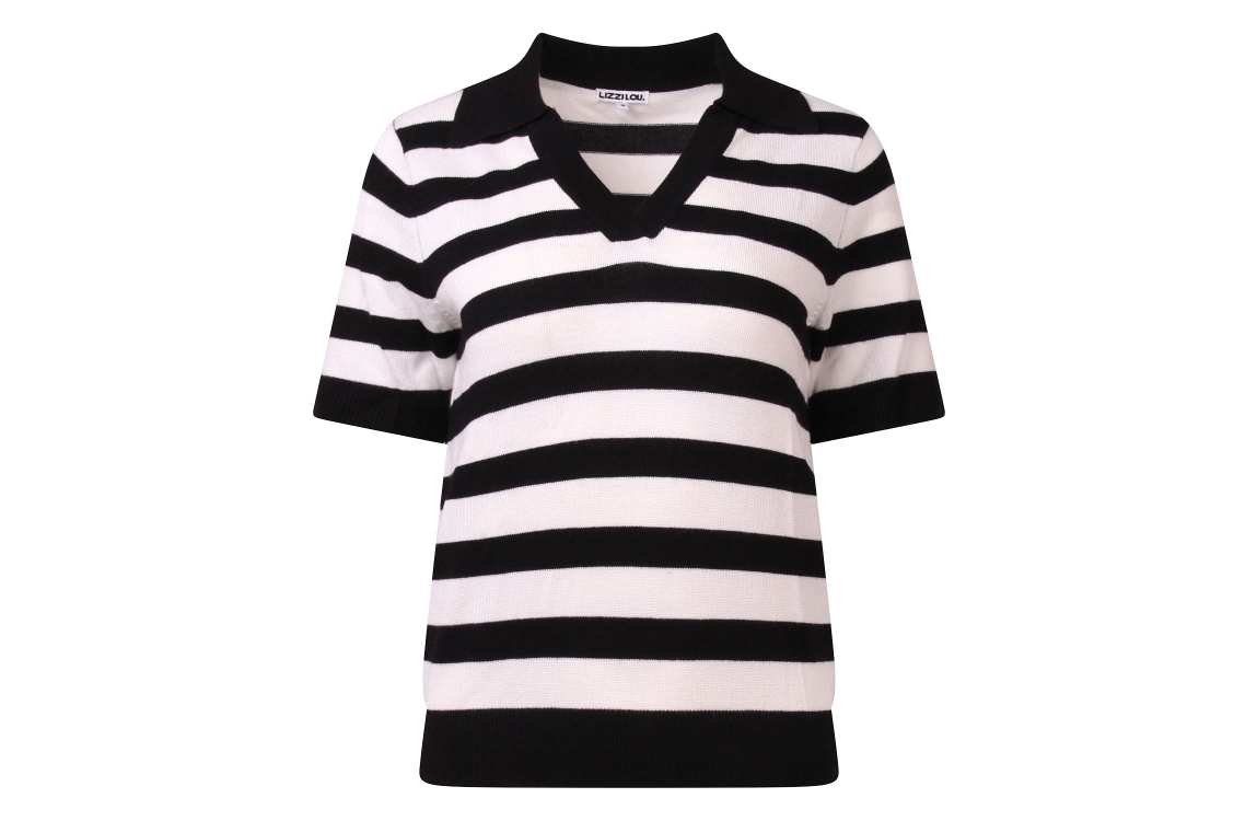 Omschrijving Visc/ny, yd stripe, polokraag, korte mouw