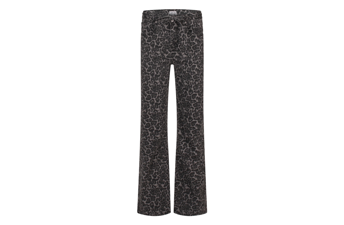 Omschrijving Co/el twill, panterdessin, rechte pijp