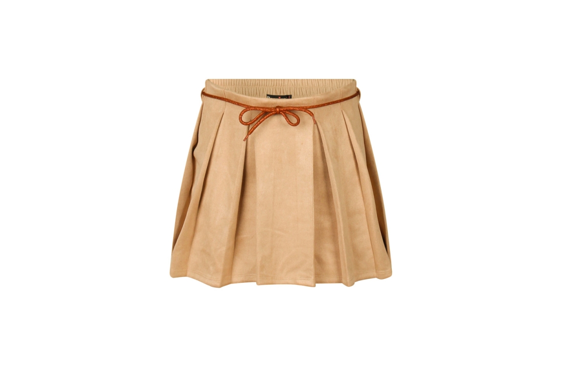 Omschrijving Suedine skort, geplooid, lurex koordje