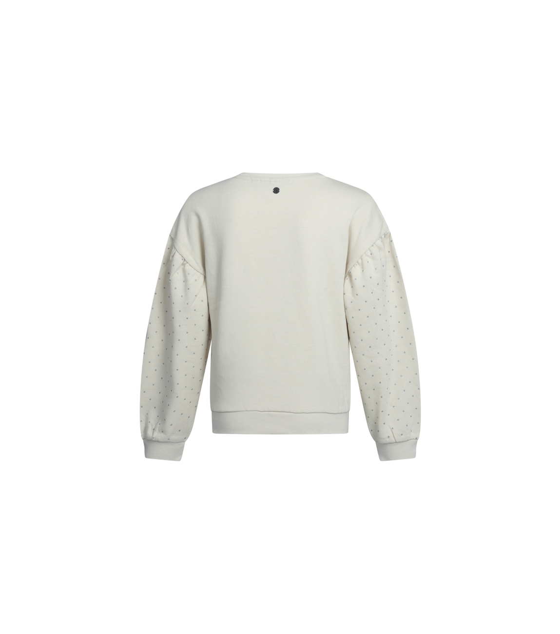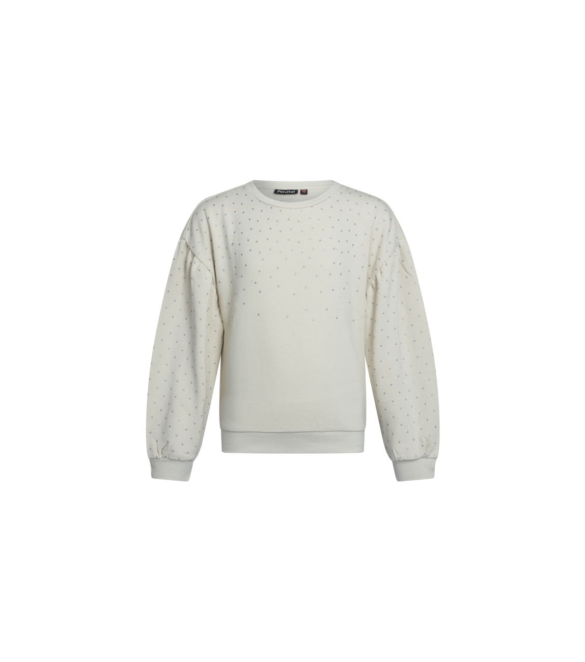 Omschrijving | Co/pol sweat, glitterstip, pofmouw |