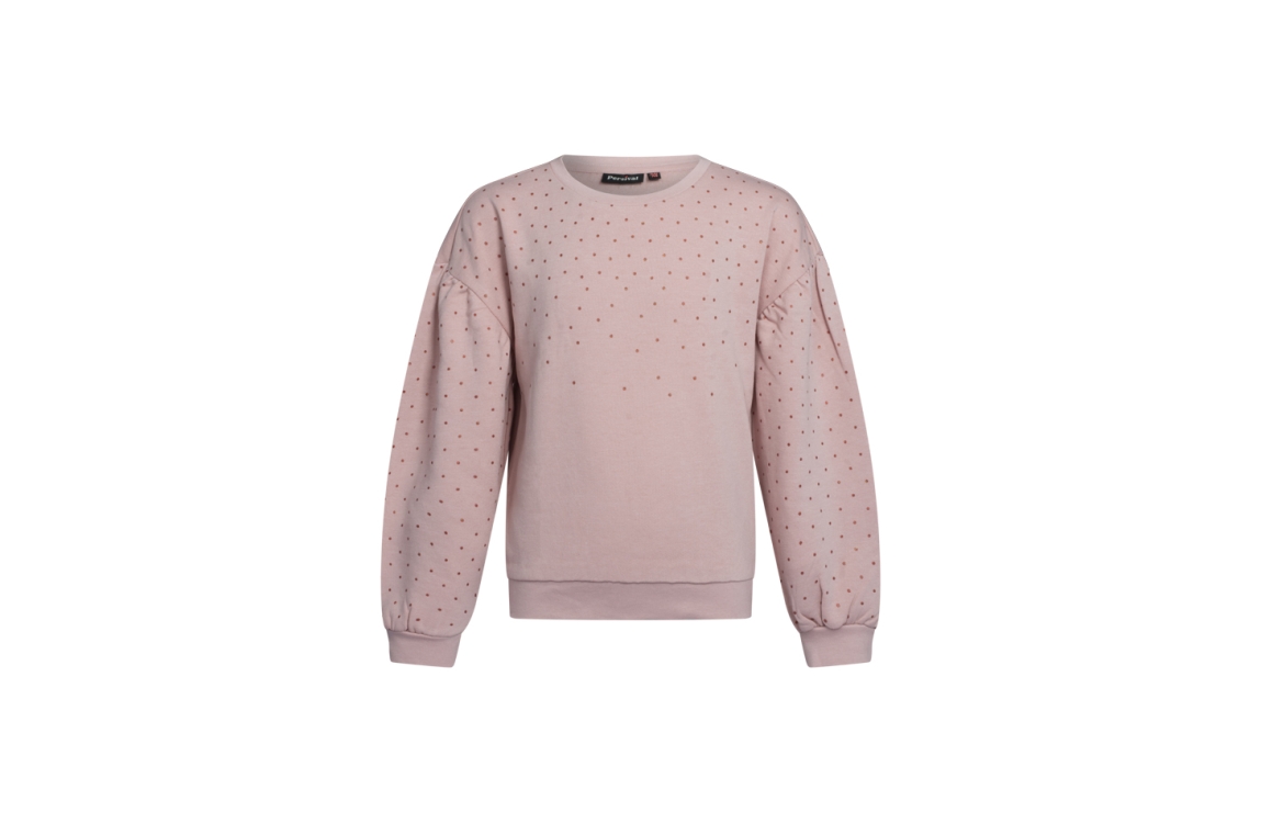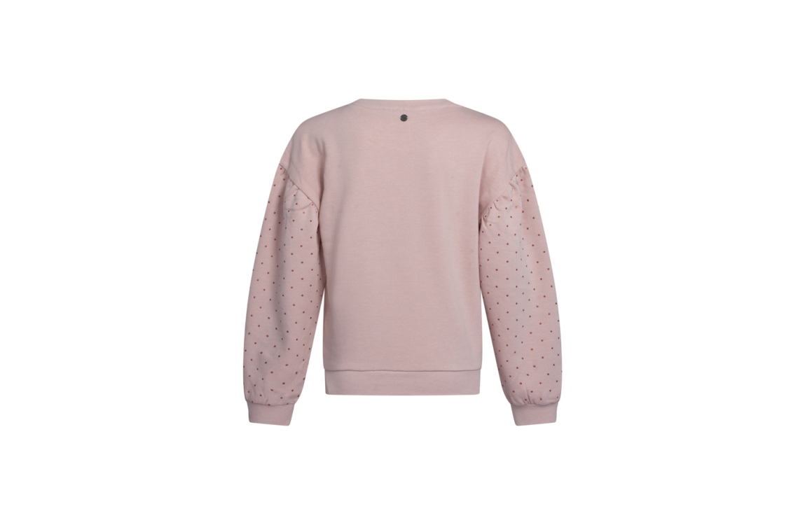 Omschrijving Co/pol sweat, glitterstip, pofmouw