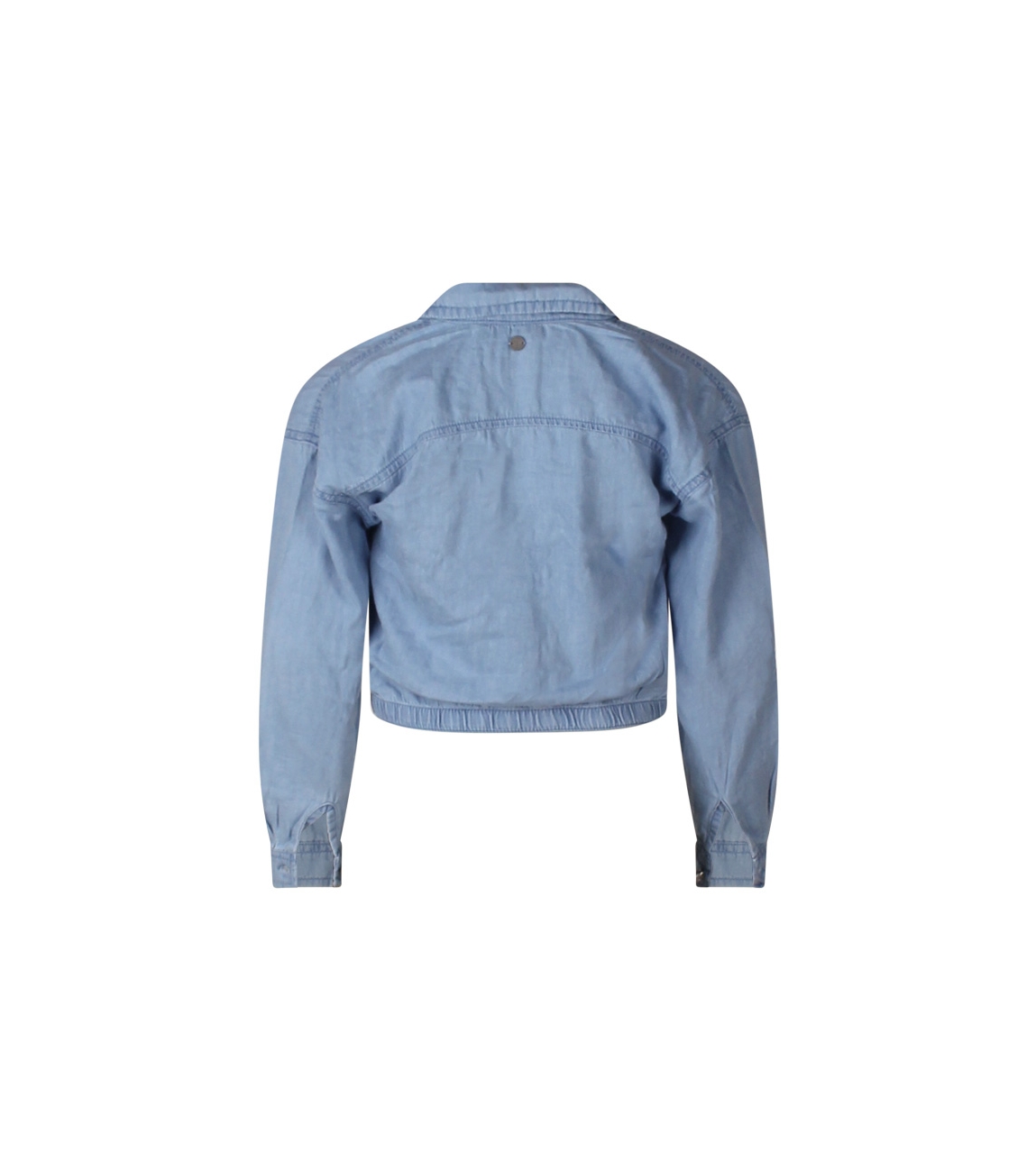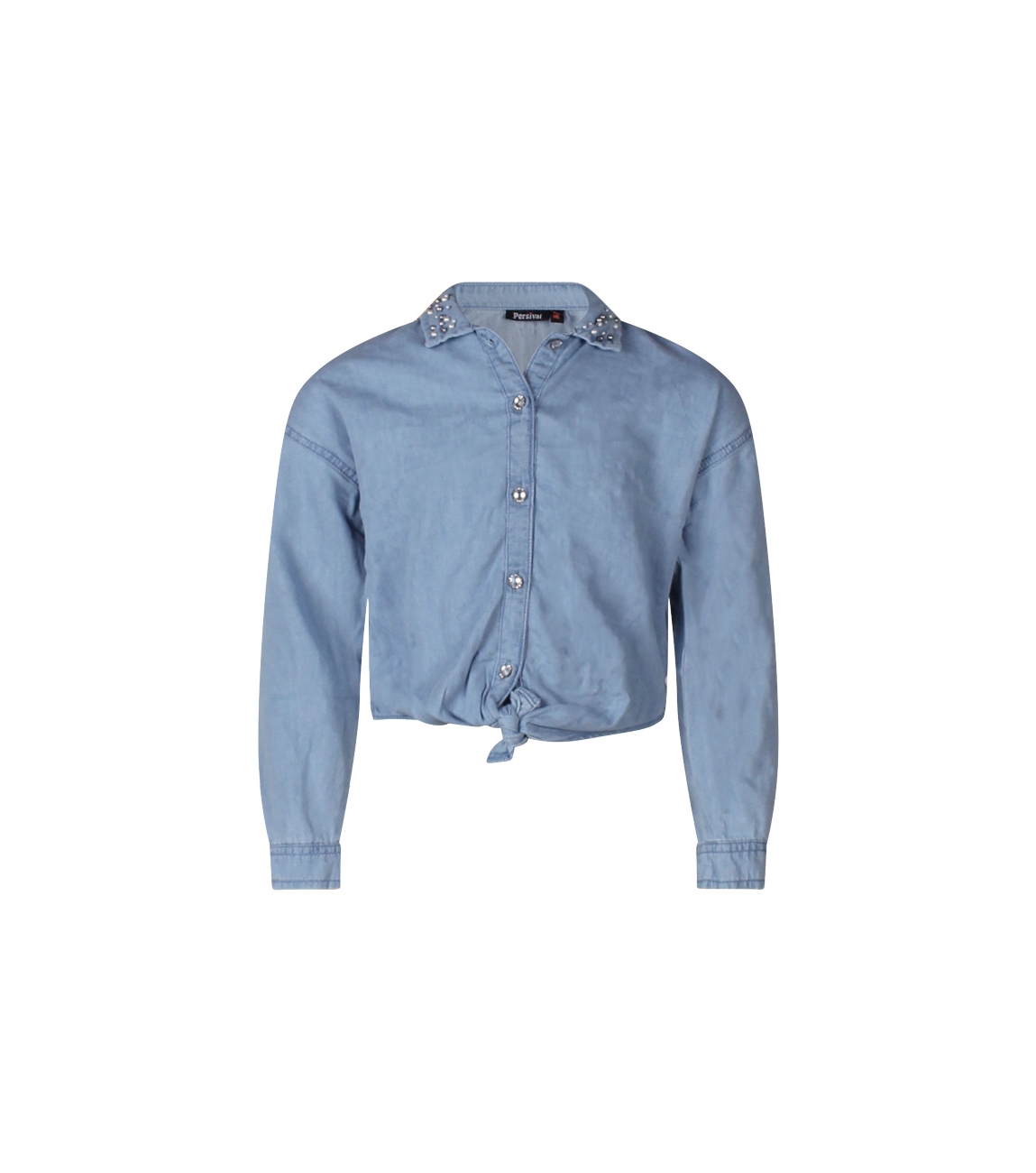 Omschrijving | Denim, kraag steentjes, geknoopt |