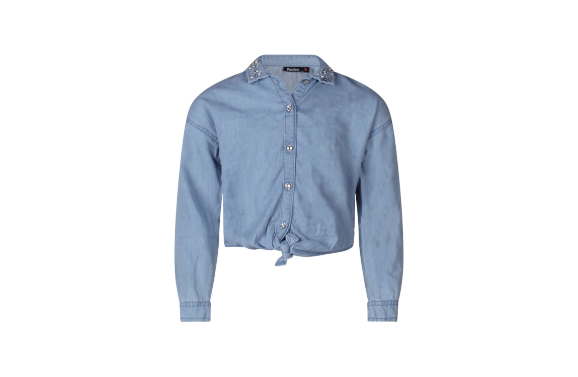 Omschrijving Denim, kraag steentjes, geknoopt