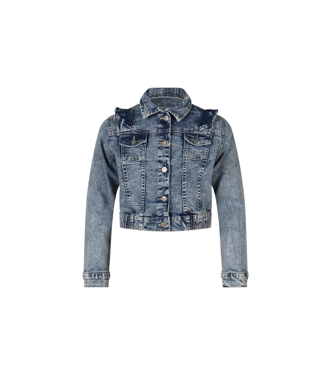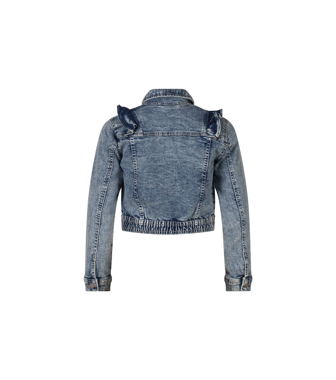 Omschrijving | Co/ly denim, klepzakken, ruche |