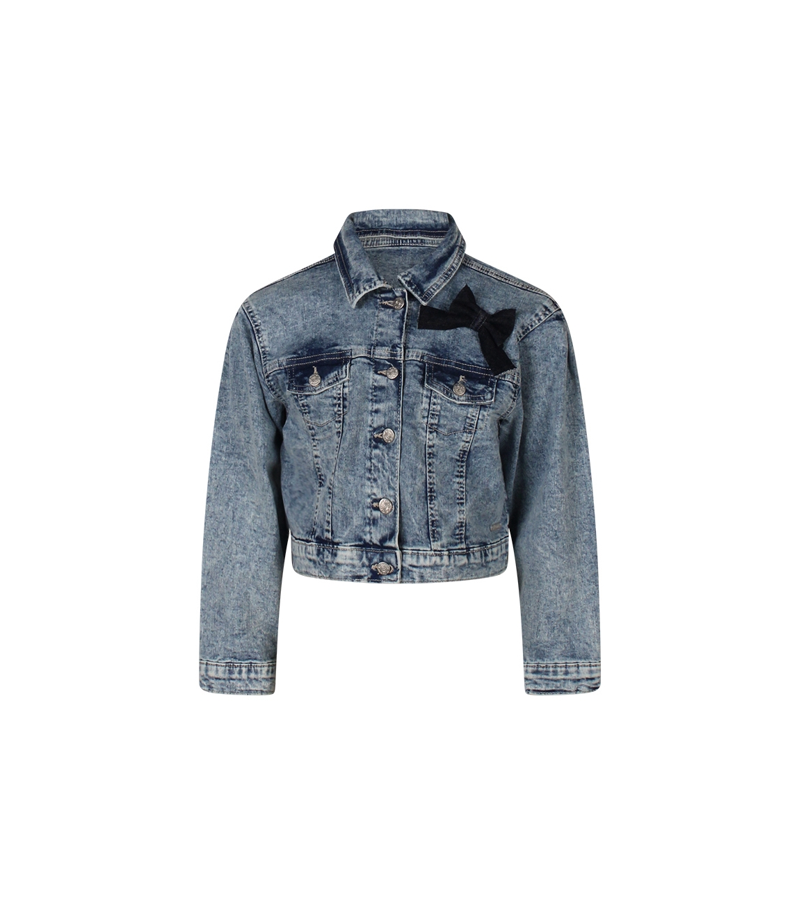 Omschrijving | Co/ly denim, strik, kort/wijd model |