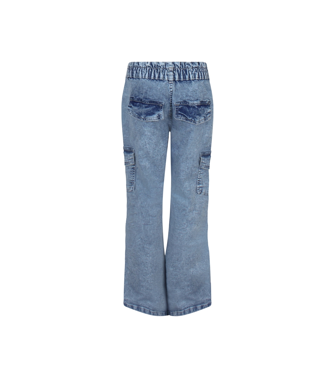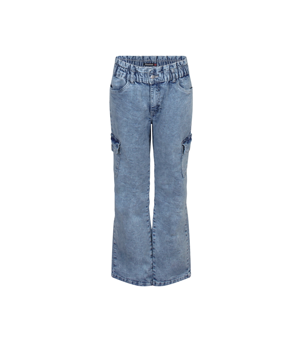 Omschrijving | Co/ly denim, zijklepzakken, rechte pijp |