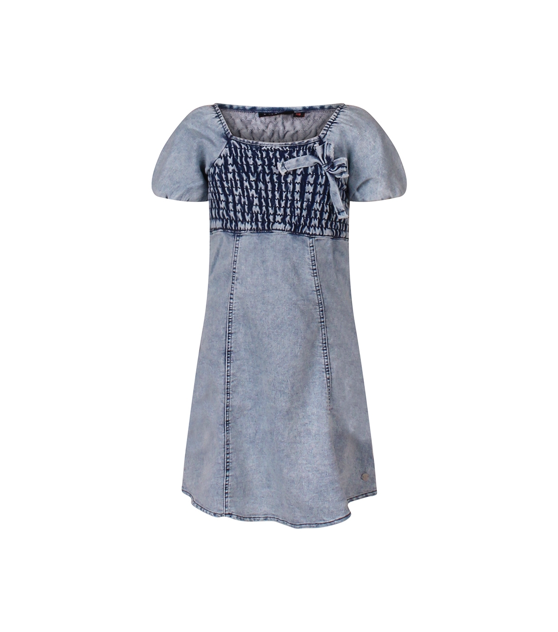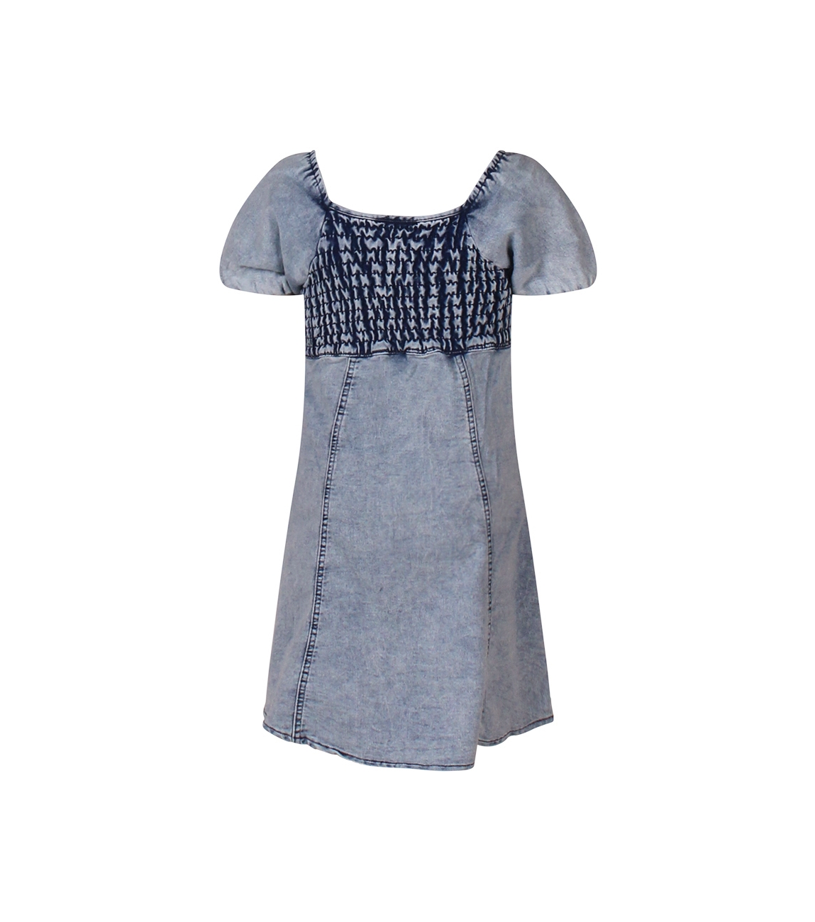 Omschrijving | Sweatdenim, smock, pofmouw, A-lijn |