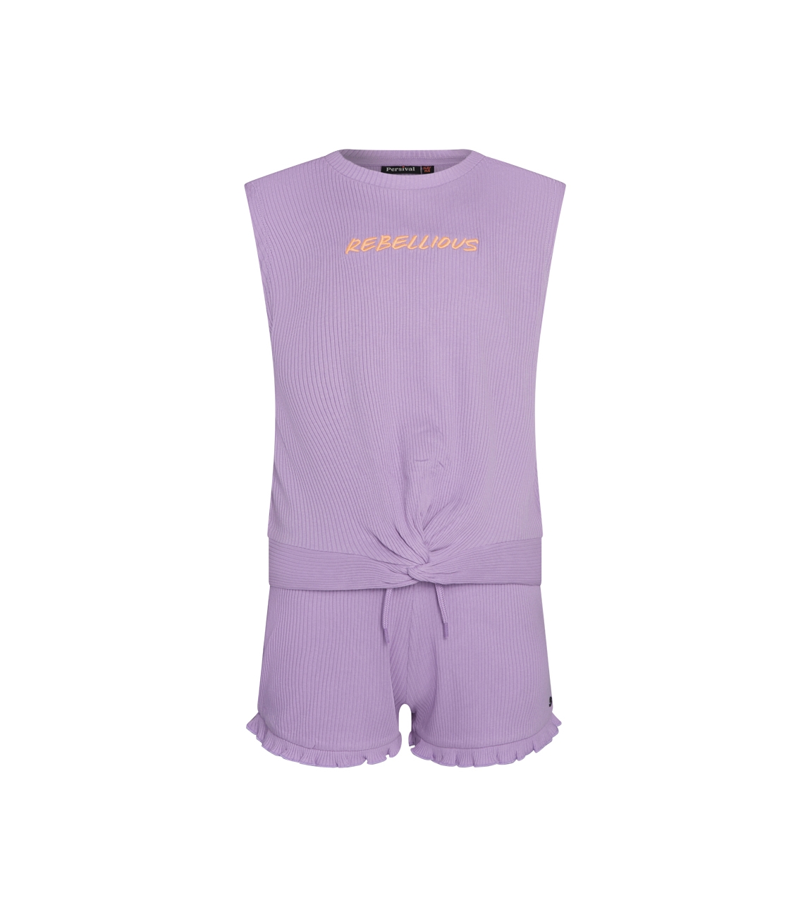 Omschrijving | Co/ly rib, 2-delig, singlet met short |