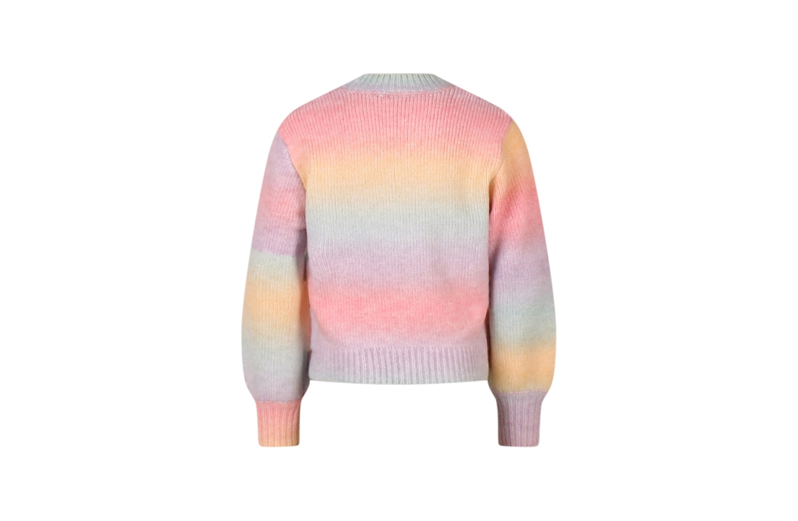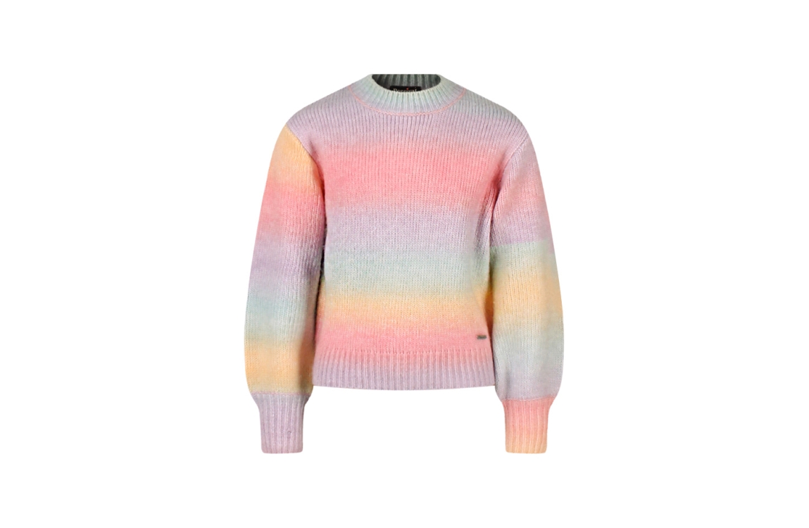 Omschrijving Ribbrei, regenboogkleuren, turtleneck