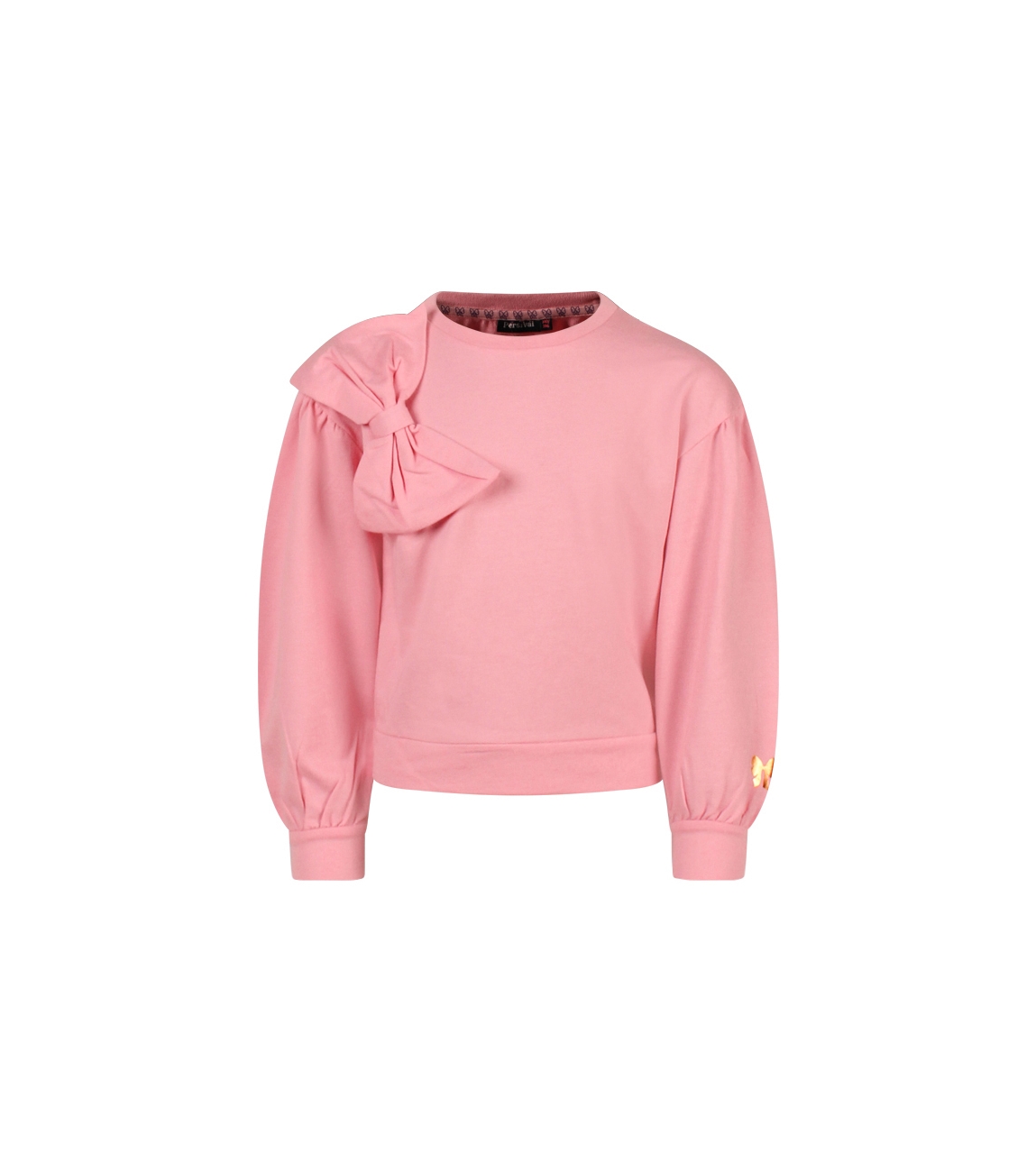 Omschrijving | Co/pol sweat, strik schouder, printje |
