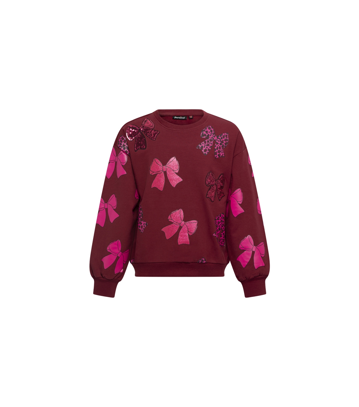 Omschrijving | Co/ly, allover strikken folie/glitter/pailetten |