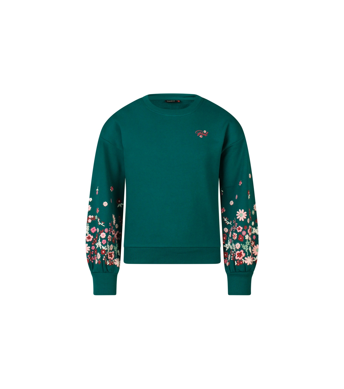 Omschrijving | Sweat, puffprint bloemen mouw |