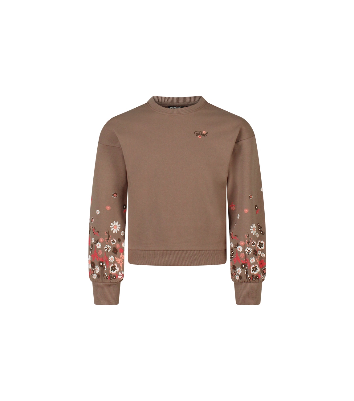 Omschrijving | Sweat, puffprint bloemen mouw |