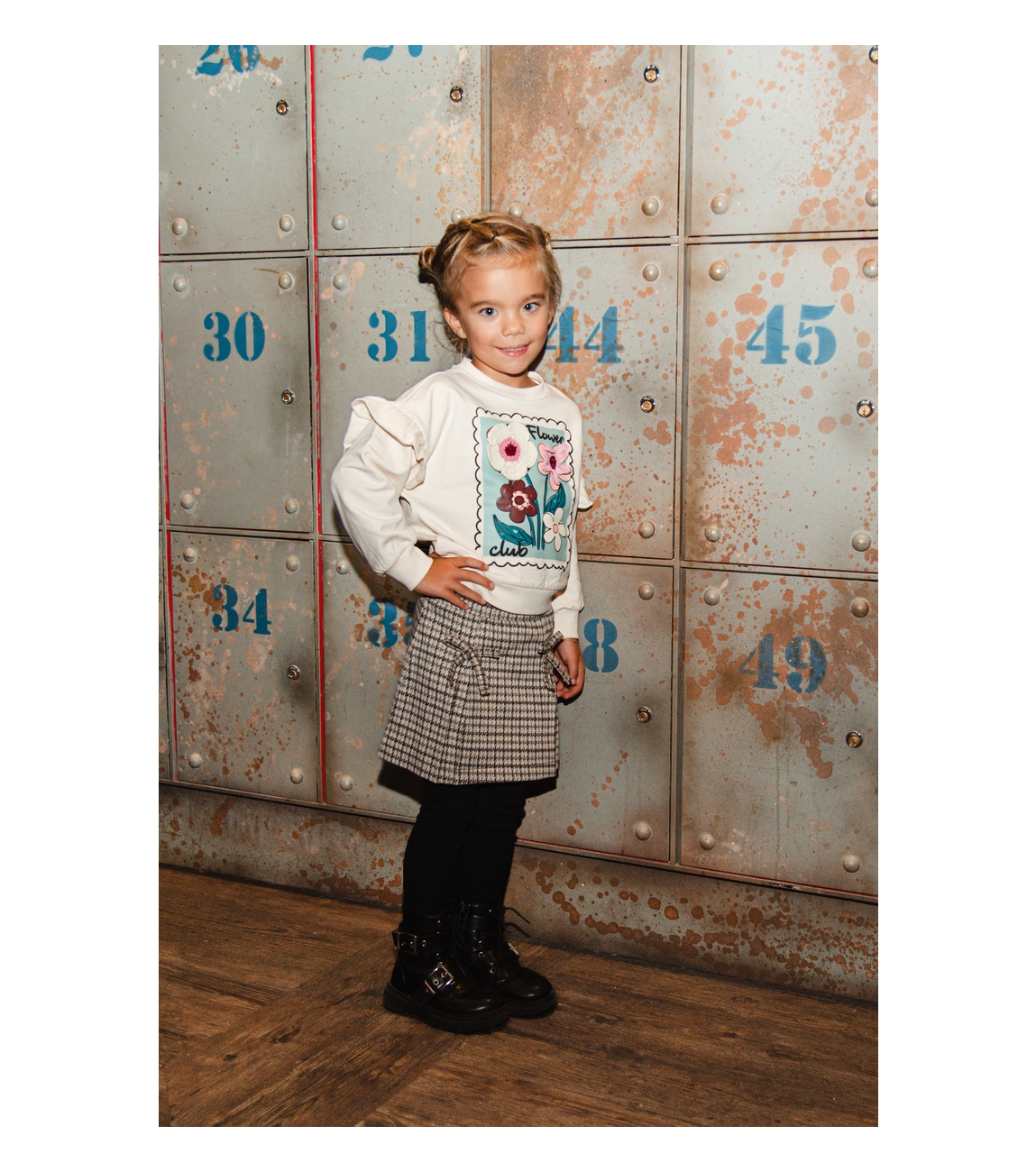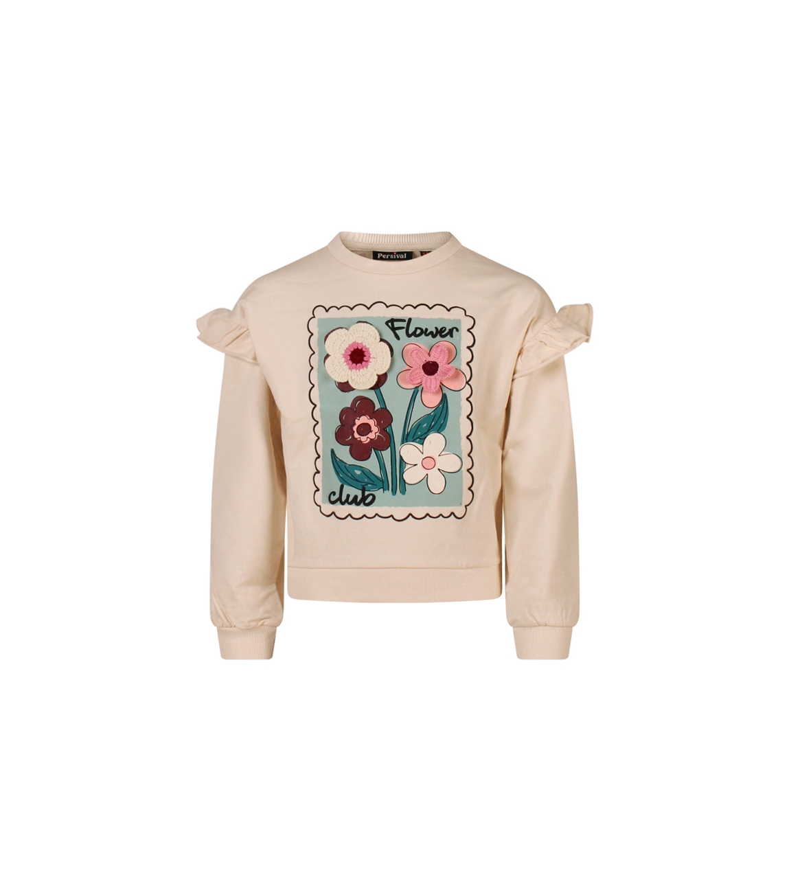 Omschrijving | Sweat, print, crochette bloemen |