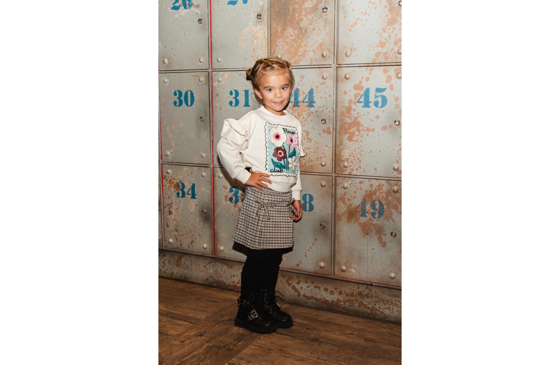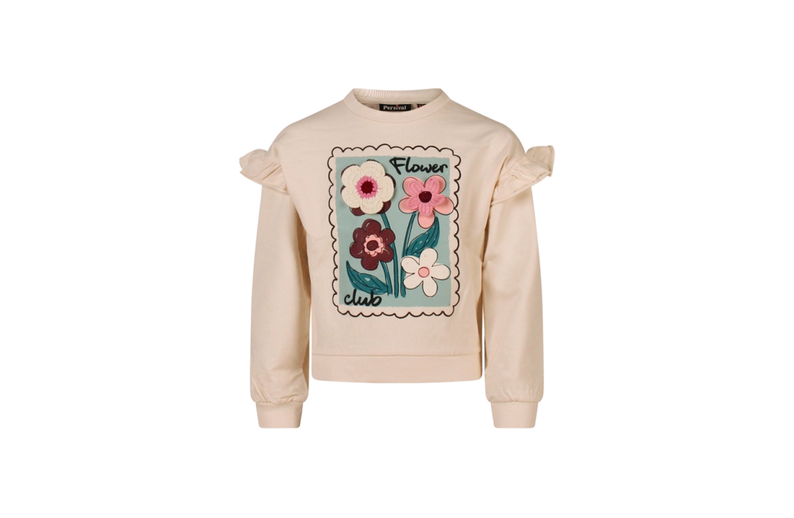 Omschrijving Sweat, print, crochette bloemen