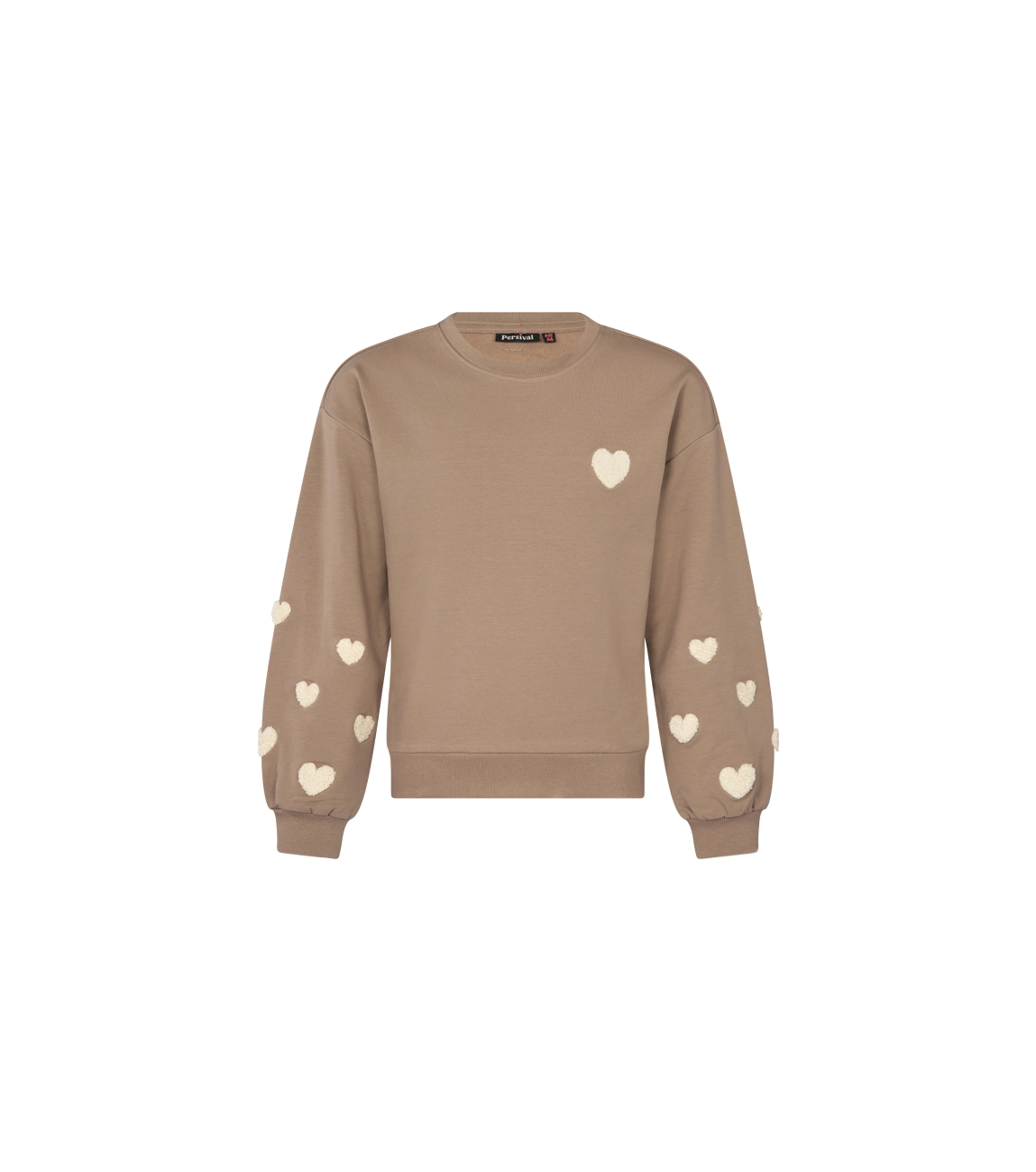 Omschrijving | Sweat, frotte hartjesapplieks mouw |