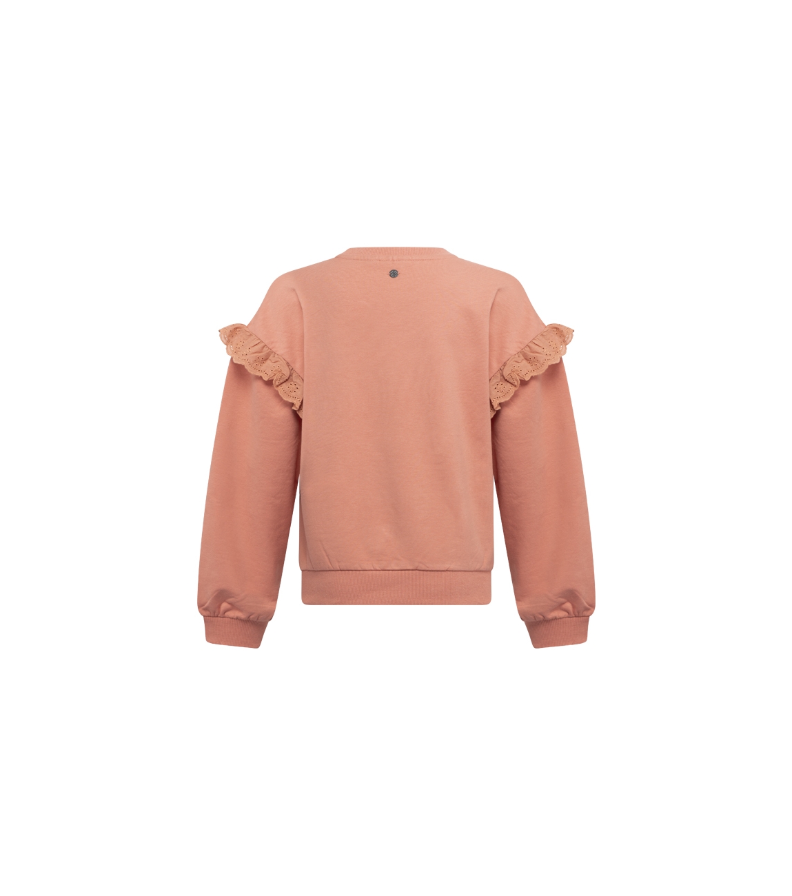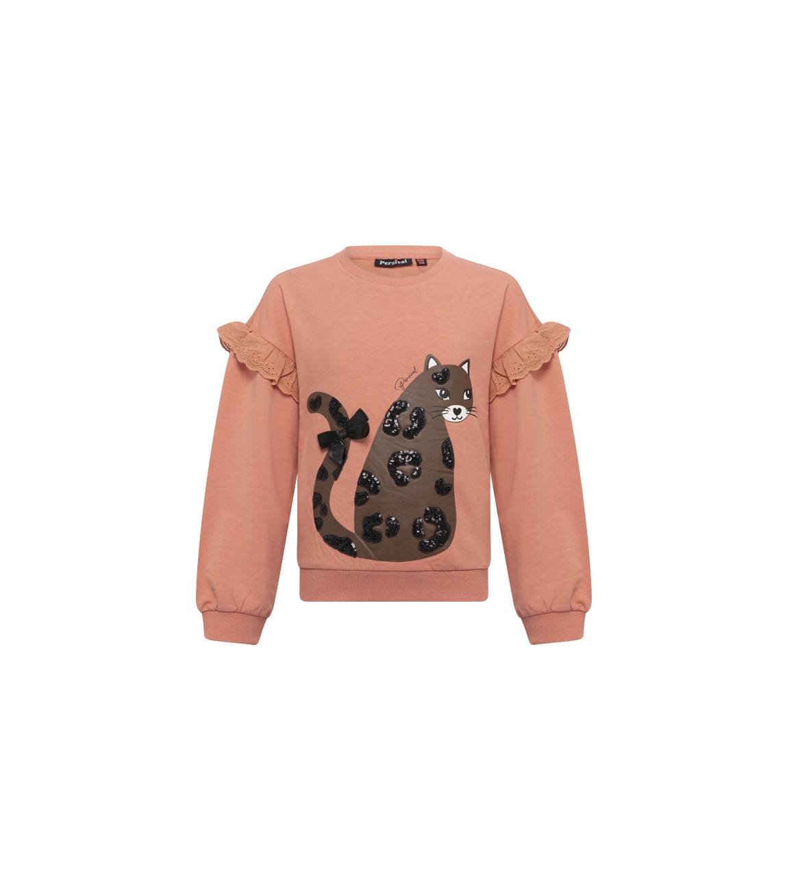 Omschrijving | Sweat, panterprint pailetten, broderie ruche |