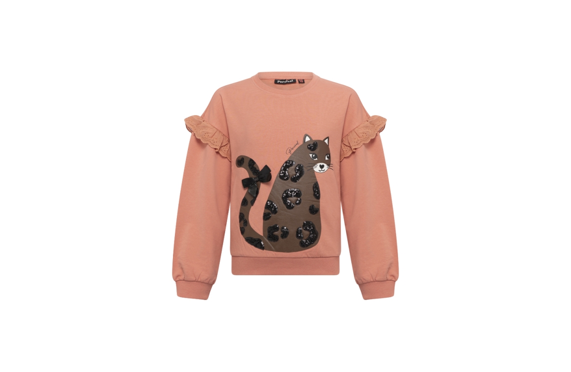 Omschrijving Sweat, panterprint pailetten, broderie ruche